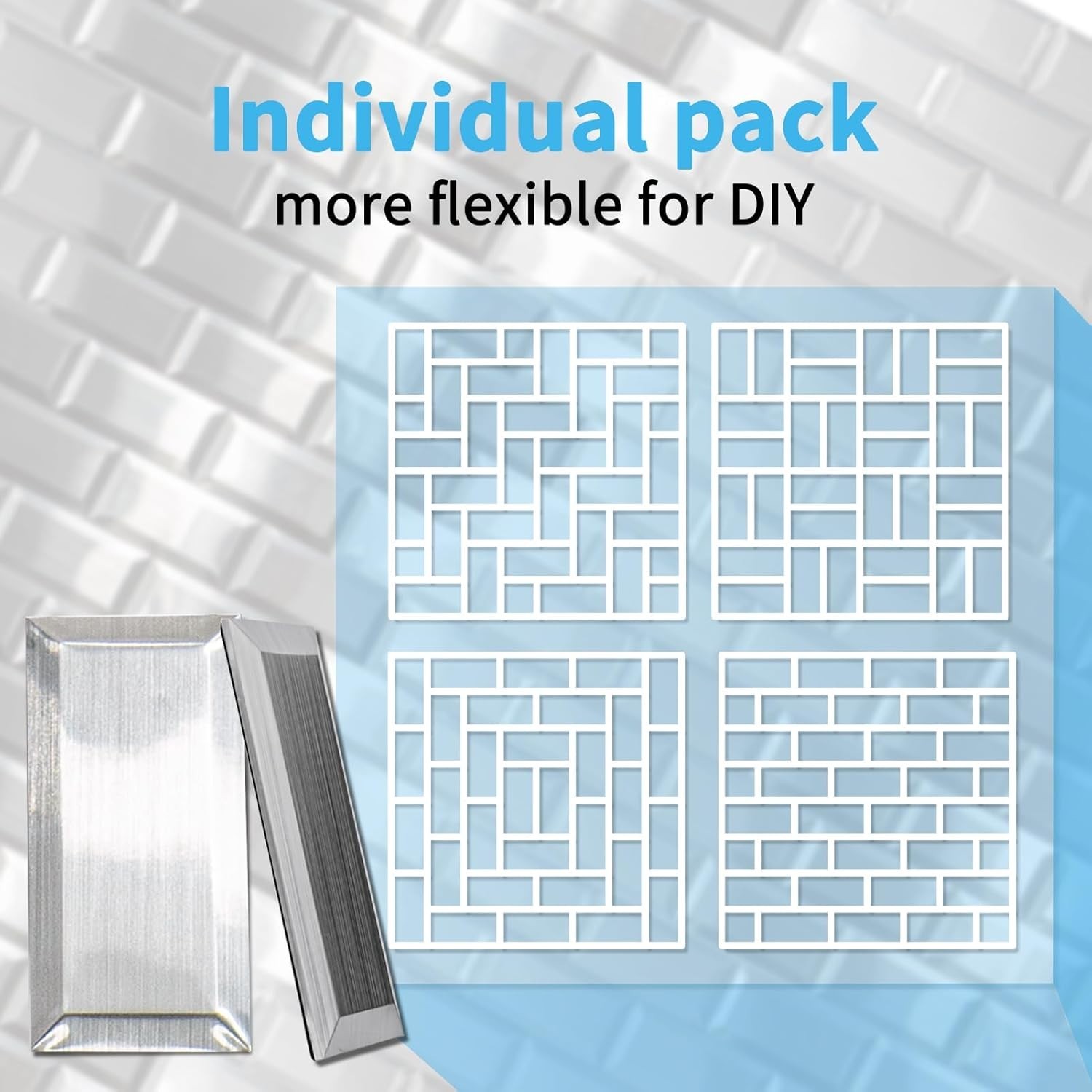 как выглядит 100 Pcs Peel and Stick Backsplash Tiles, 3D Textured Metal Stick On Subway Wa... фото