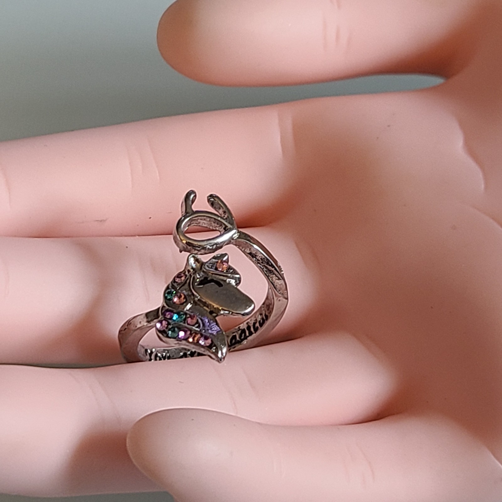 как выглядит New Magical Silver Tone Adjustable Unicorn Ring Multicolored Crystals Fits Most фото