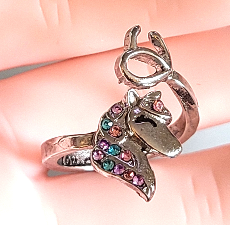 New Magical Silver Tone Adjustable Unicorn Ring Multicolored Crystals Fits Most