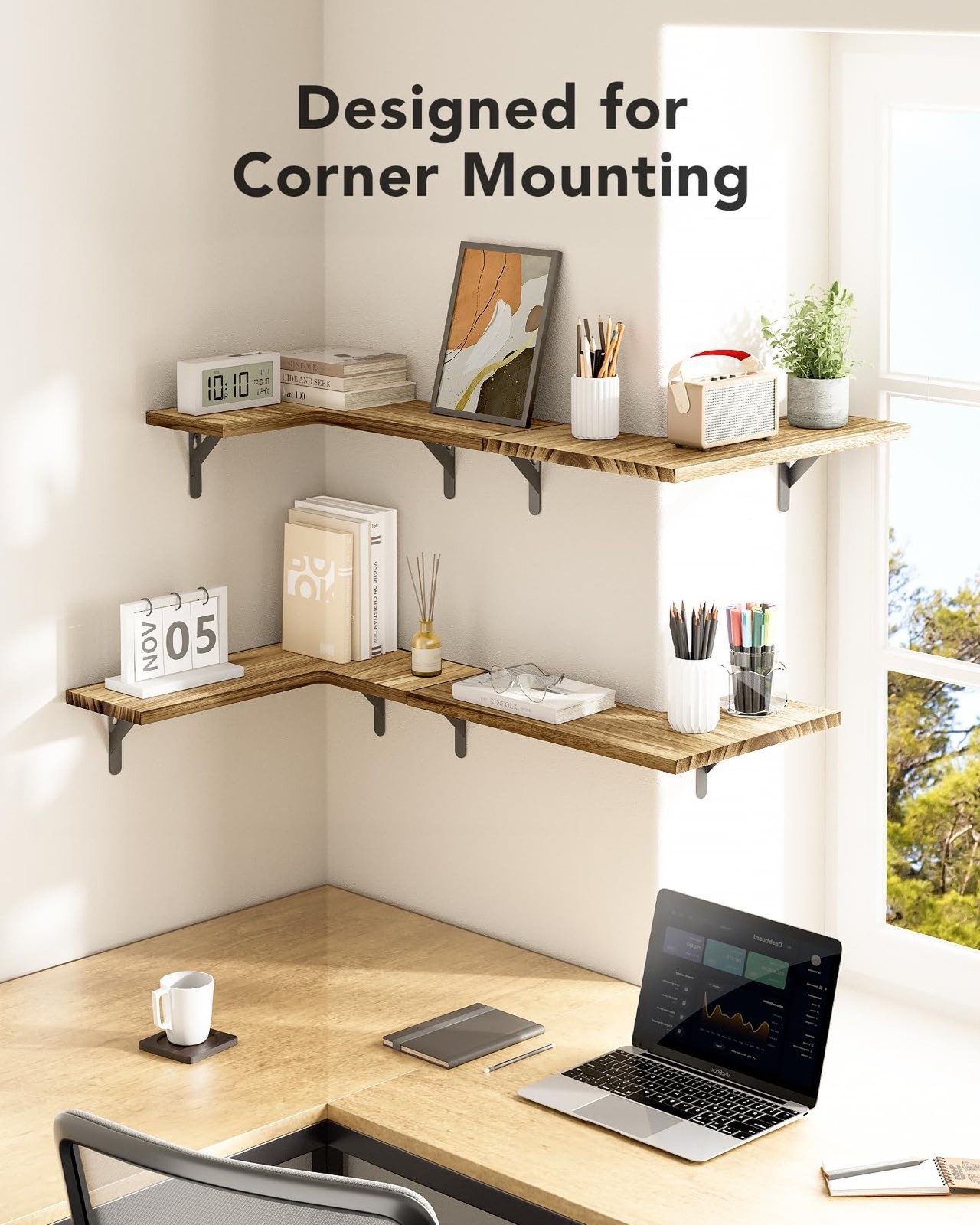 как выглядит AMADA HOMEFURNISHING Corner Floating Shelves, Set of 4 Corner Shelf Wall Moun... фото