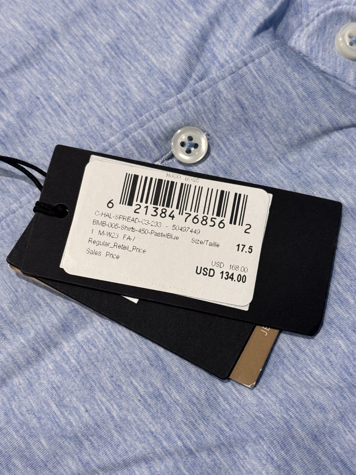 Hugo Boss Men HAL Spread Casual Fit Jersey Stretch Cotton Dress Shirt 41 16