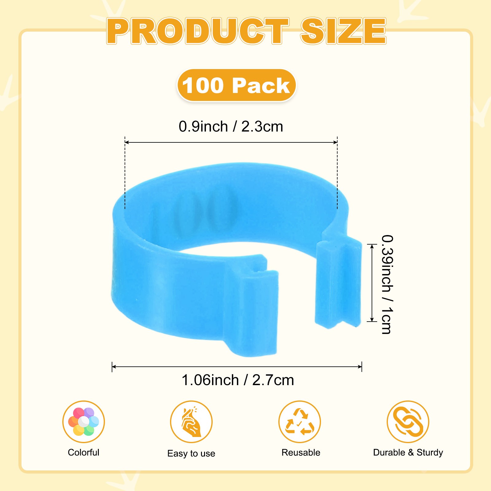 100-Pack Chickens Leg Bands, 20 mm Plastic Chicken Leg Rings Blue