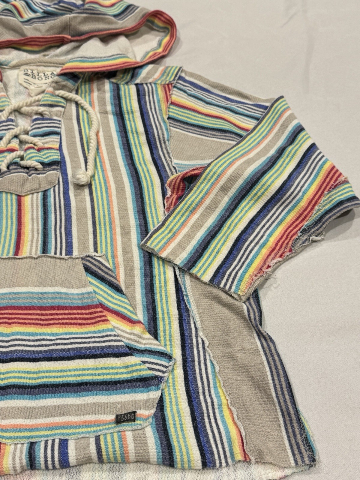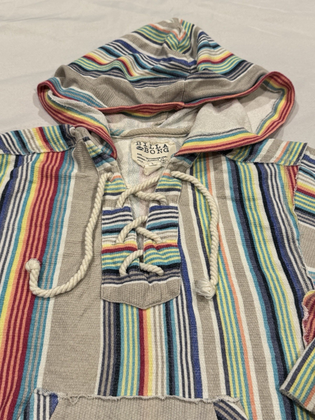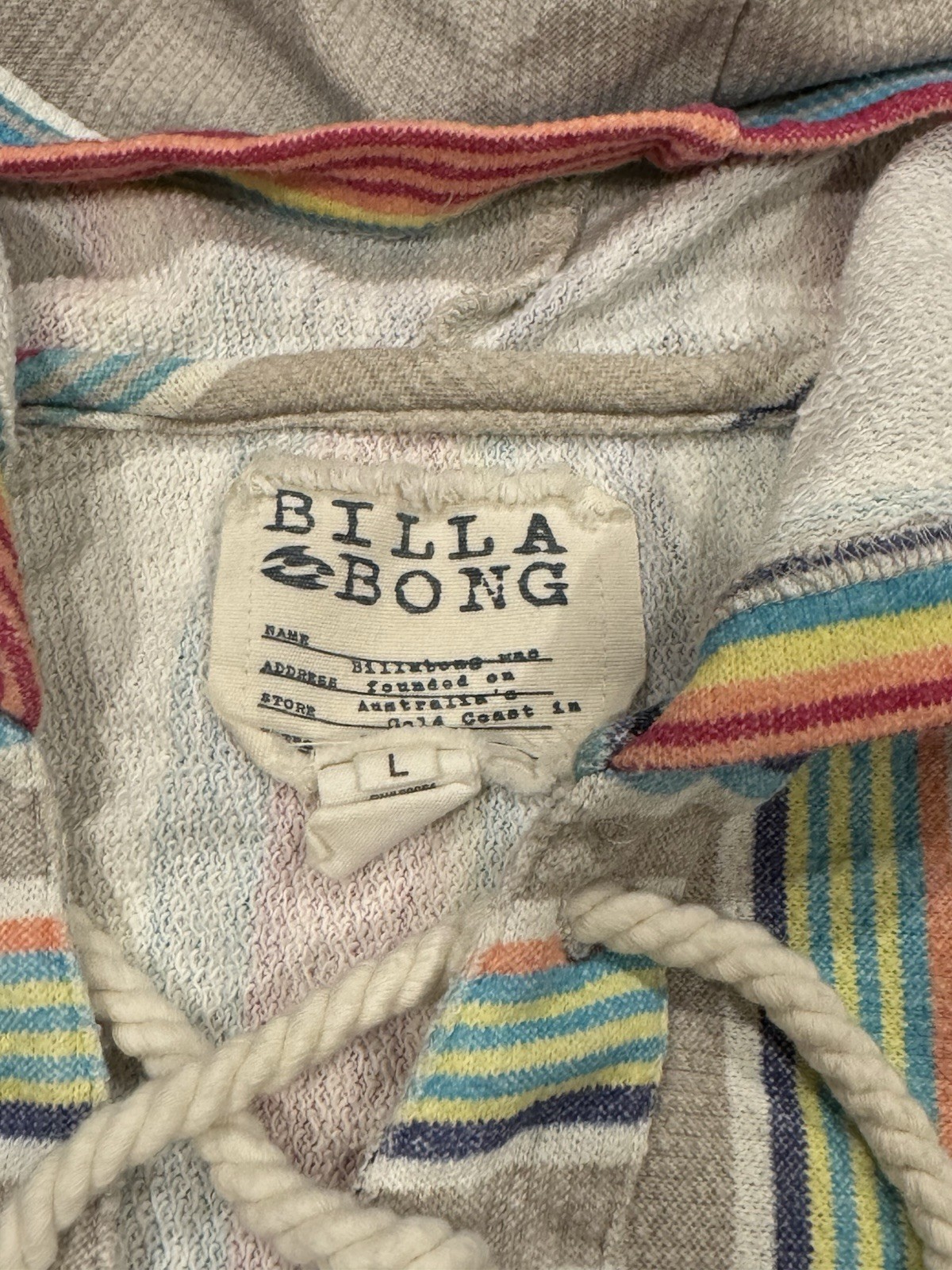как выглядит Billabong Soft and Comfy Striped Pullover Hoodie-sz Large Lightweight фото