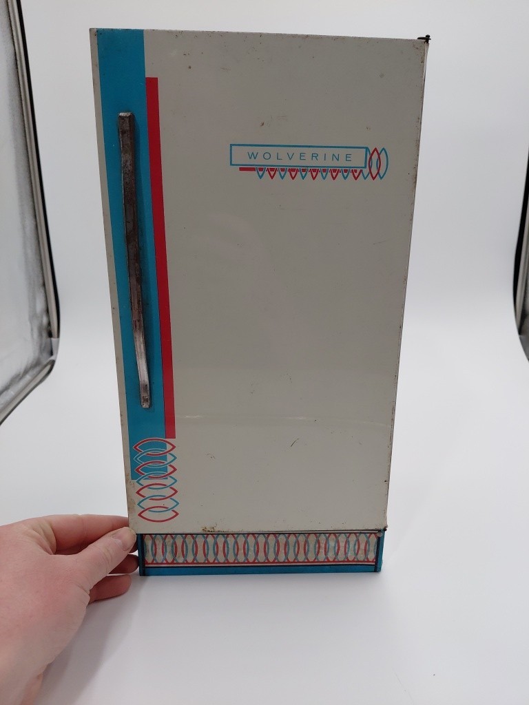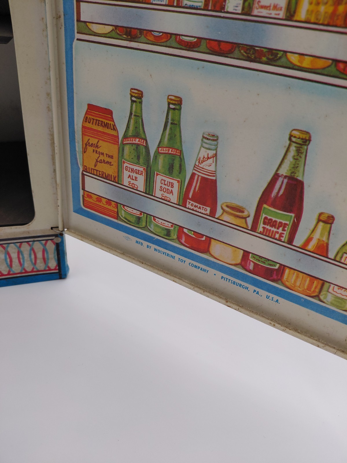 Vintage 1950 s WOLVERINE Tin Litho Red White Blue Toy Children s Fridge Metal