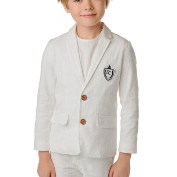 как выглядит Petit Clair Seersucker Emblem Blazer Size 10 Boys White фото