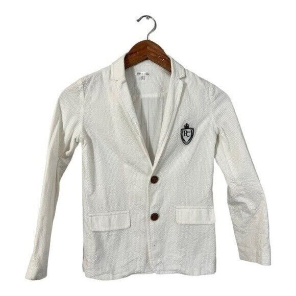 Petit Clair Seersucker Emblem Blazer Size 10 Boys White