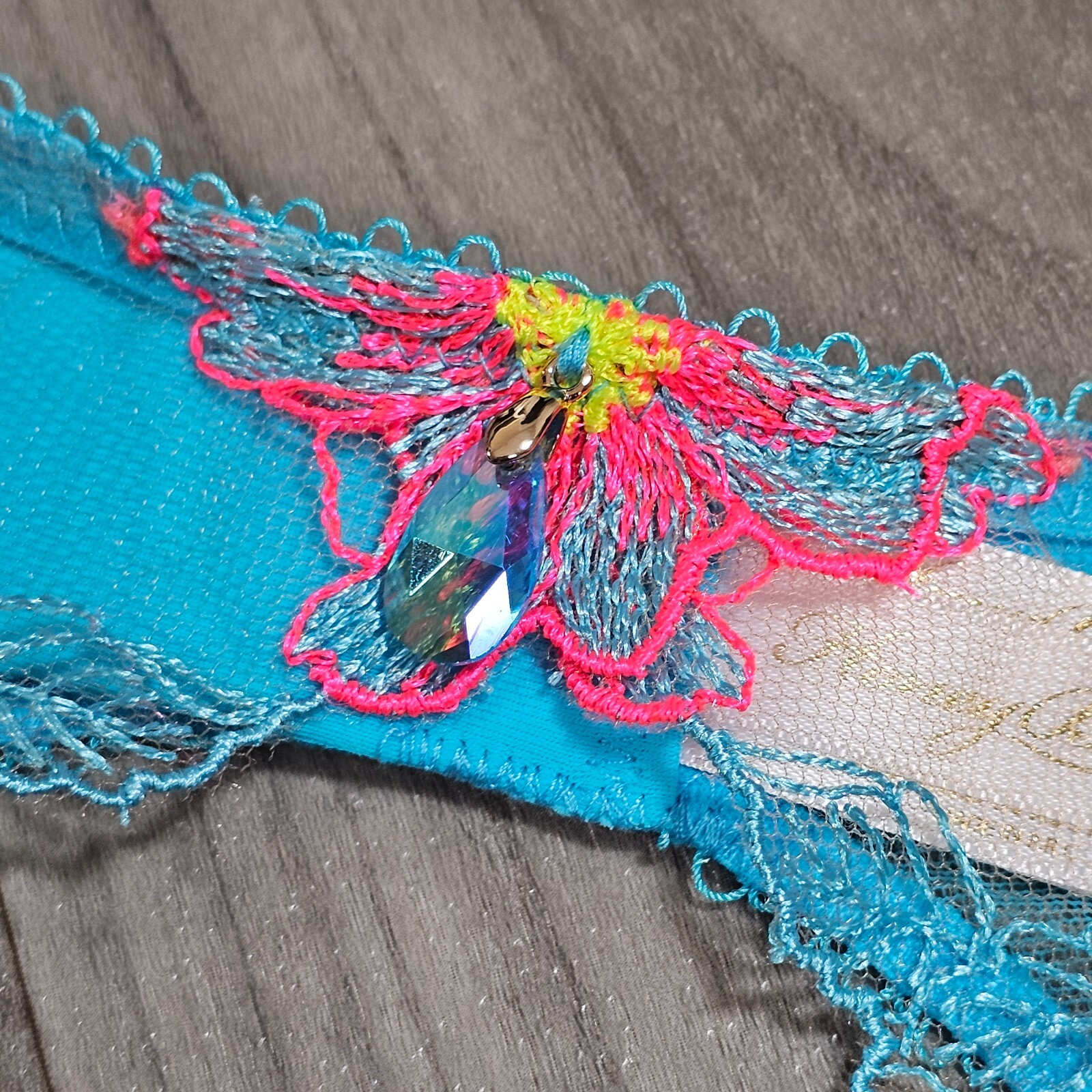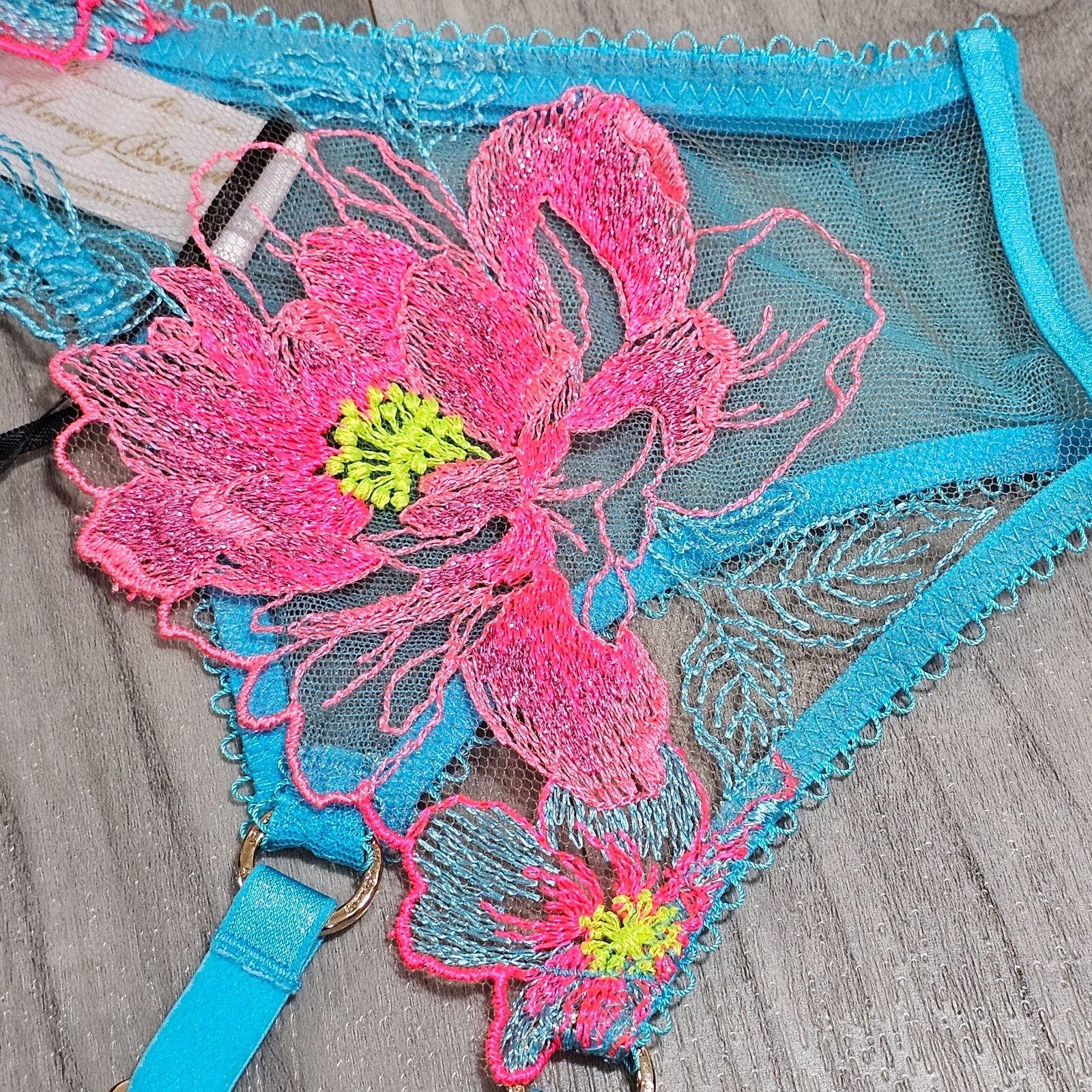 как выглядит Honey Birdette Christine Turquoise Floral Suspender Garter Belt Size M фото