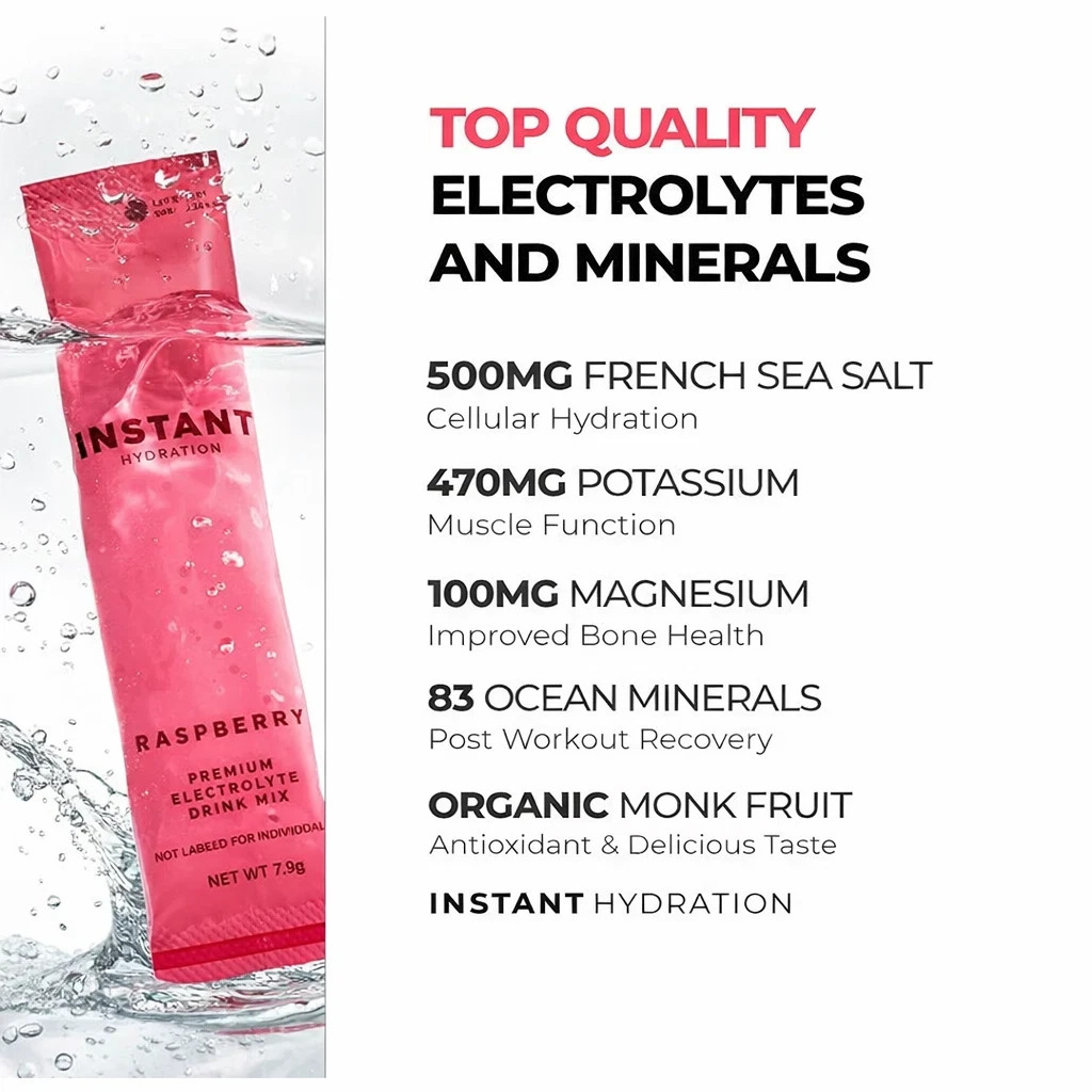 Instant Hydration Electrolytes Powder Packets - Raspberry Electrolyte Drink Mix