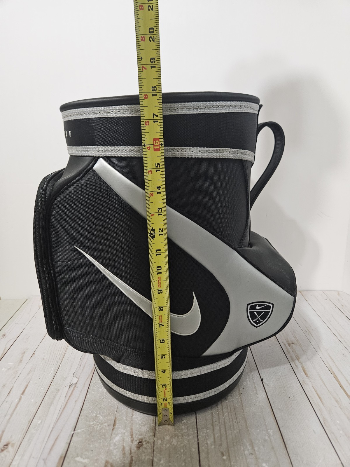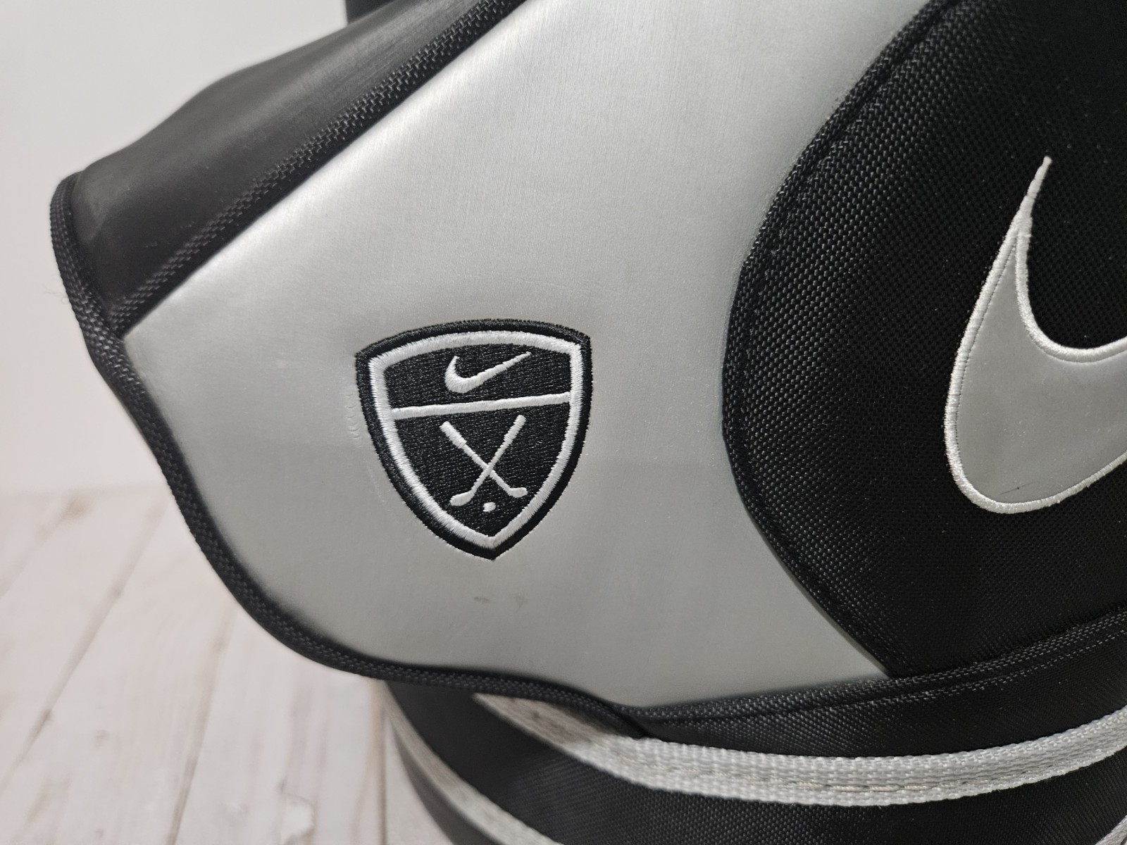 как выглядит NIKE Golf Den Caddy Mini Golf Bag Range Ball Bag Black Silver Rare HTF фото