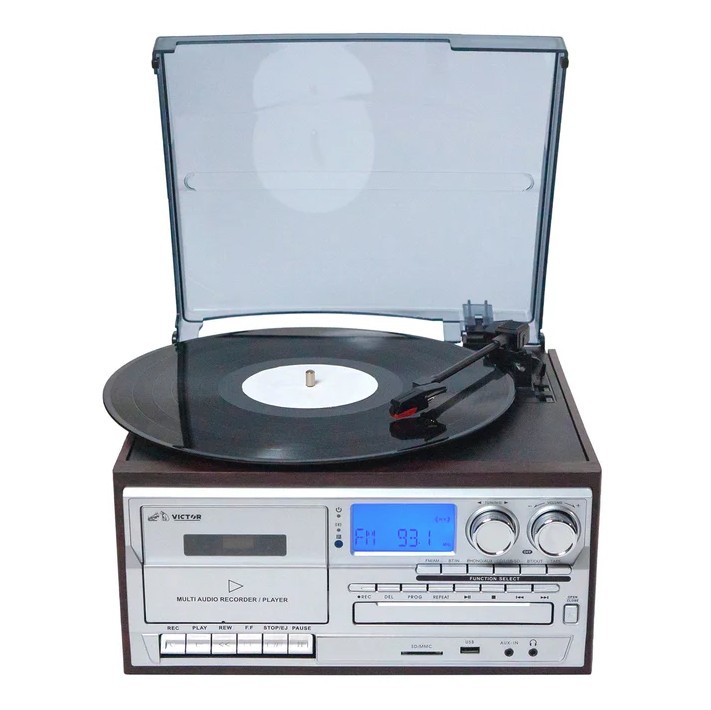 VICTOR Cosmopolitan 8-in-1 Bluetooth Turntable Music Center - Espresso