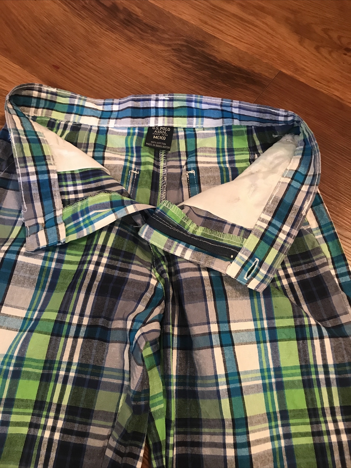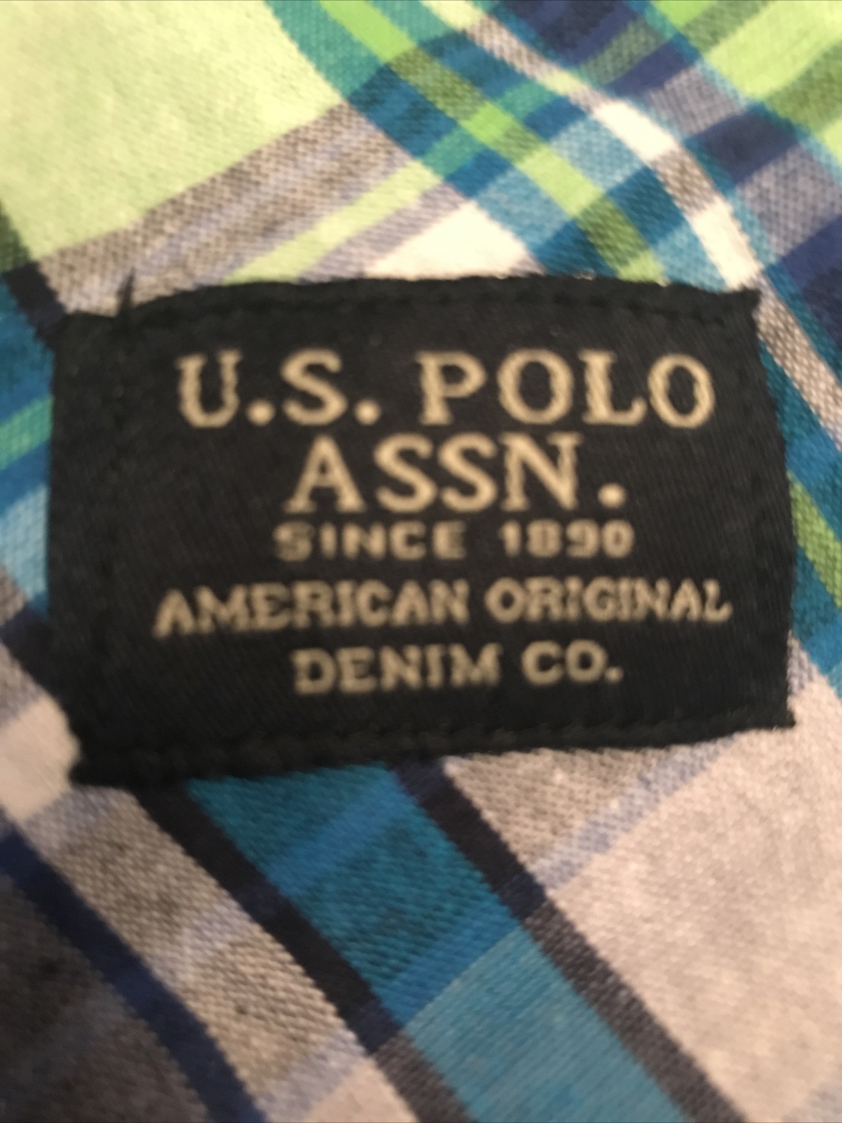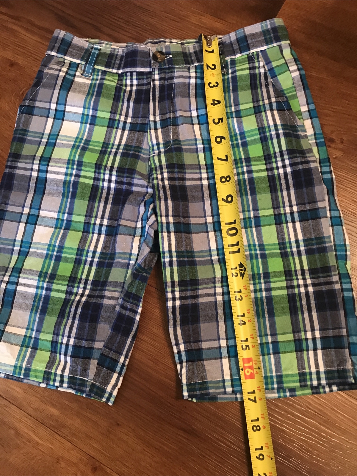 U.S. Polo Assn. Boy s 10 Medium Bermuda Shorts Green Plaid Pockets 100 Cotton