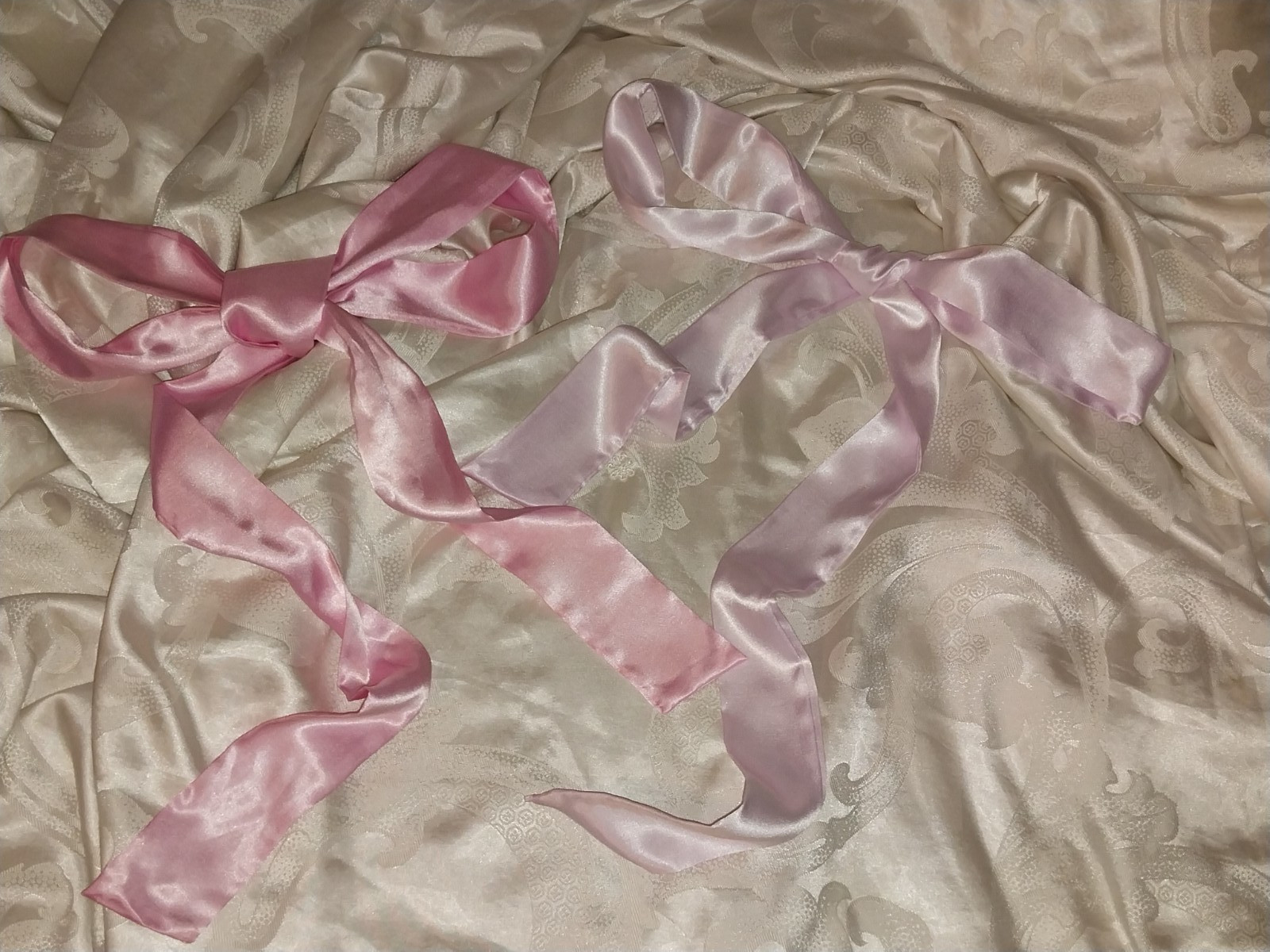 как выглядит VTG SATIN SHINY NIGHTGOWN ROBE SASH BELT WAIST TIES BELT PAIR PINK LILAC NWT фото