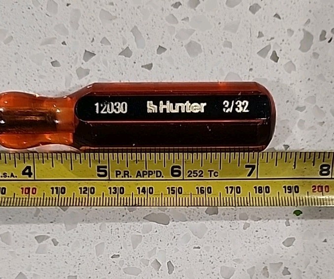 Hunter 3/32 Hex Allen Key Style Driver 7 Great Condition - MADE IN USA