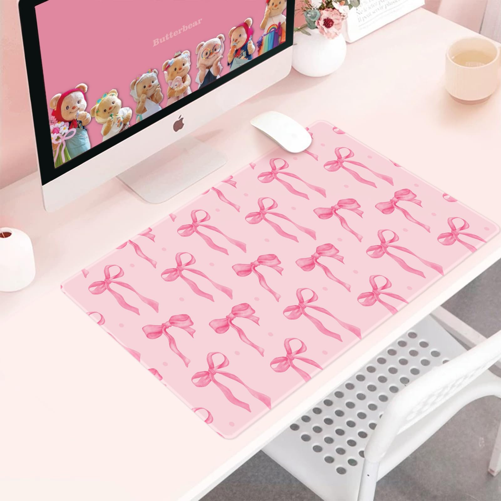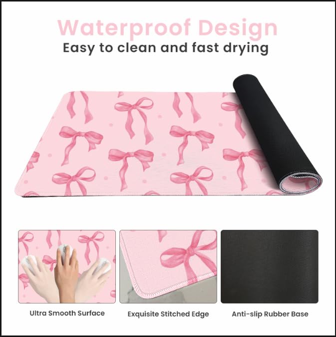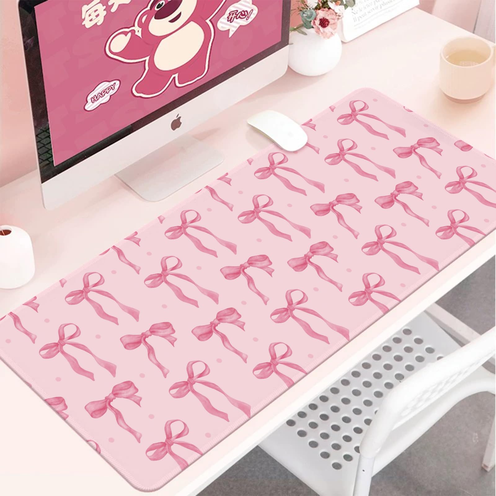 Pink Desk Mat, Bow Keyboard and Mouse Pad Computer Non-Slip Rubber...