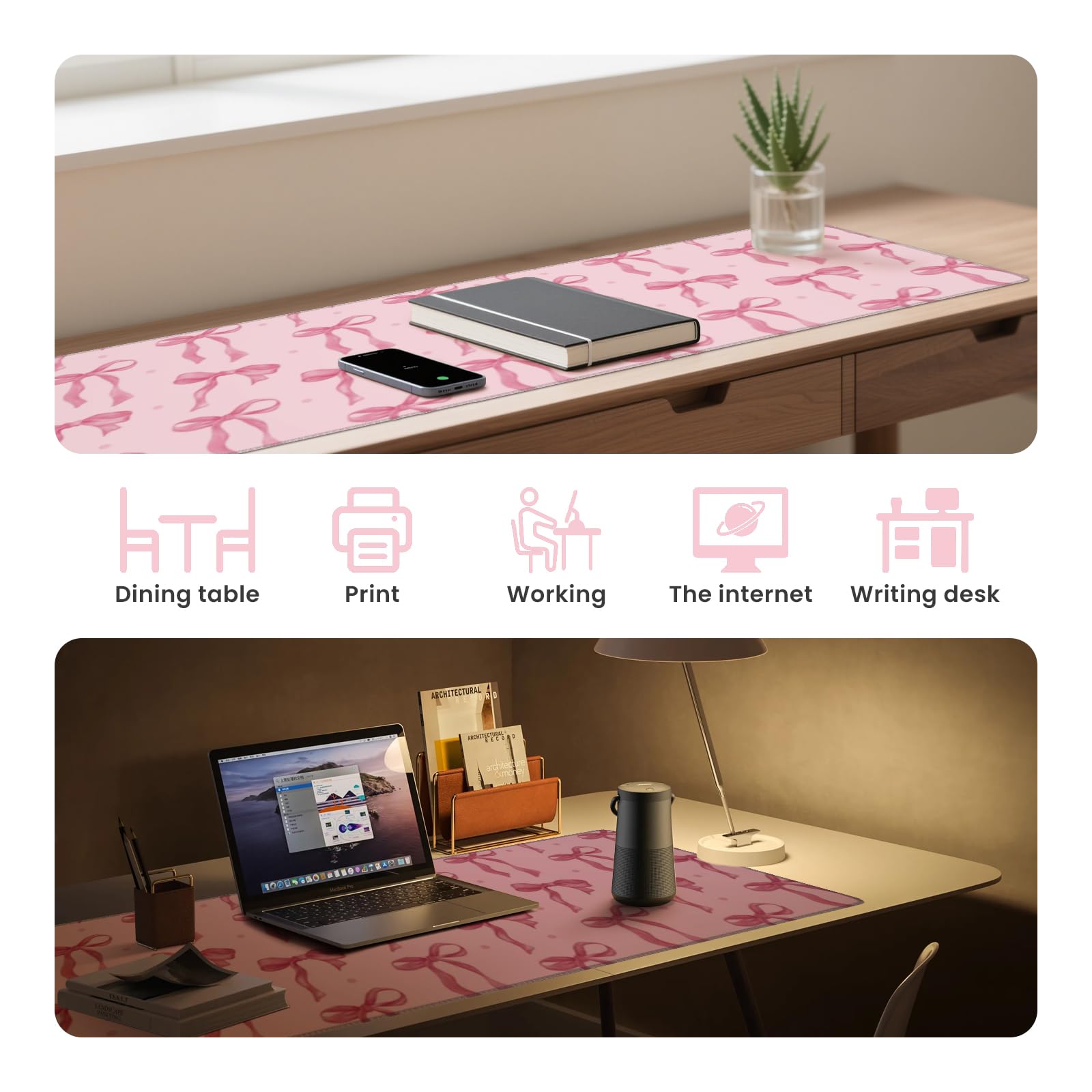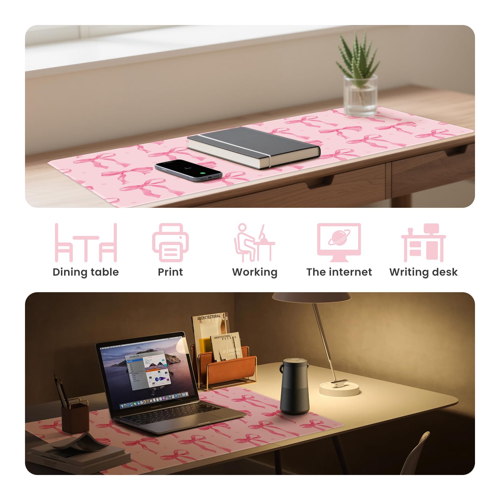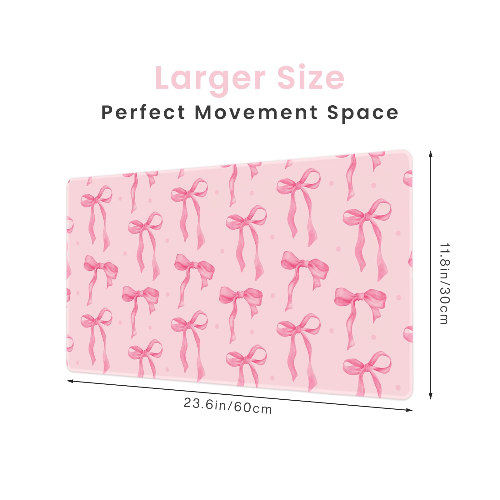Pink Desk Mat, Bow Keyboard and Mouse Pad Computer Non-Slip Rubber...