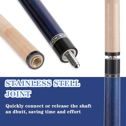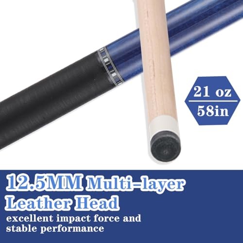 Pool Cue Stick Set, 58 inch 18/19/20/21 oz Canadian Maple 12.5mm Blue with case