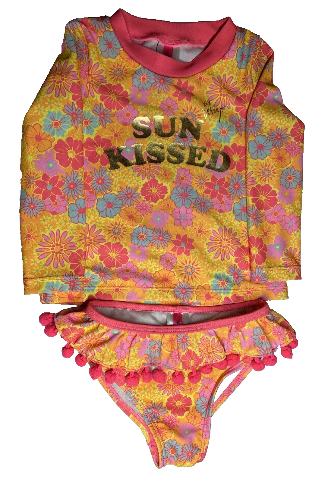 Betsey Johnson Swimsuit Tankini Girl's 18 Months 2 Pc Rash Guard Hippie Flowers