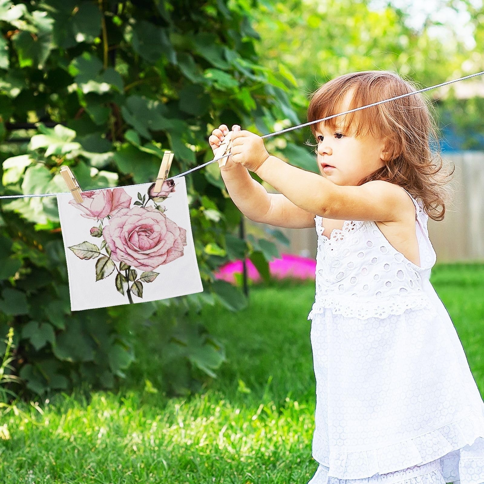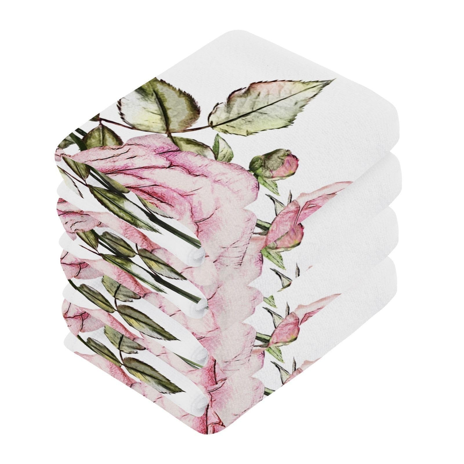 SUABO Soft Cotton Bath Washcloths,Vintage Chic Floral Pink Rose Fingertip Tow...