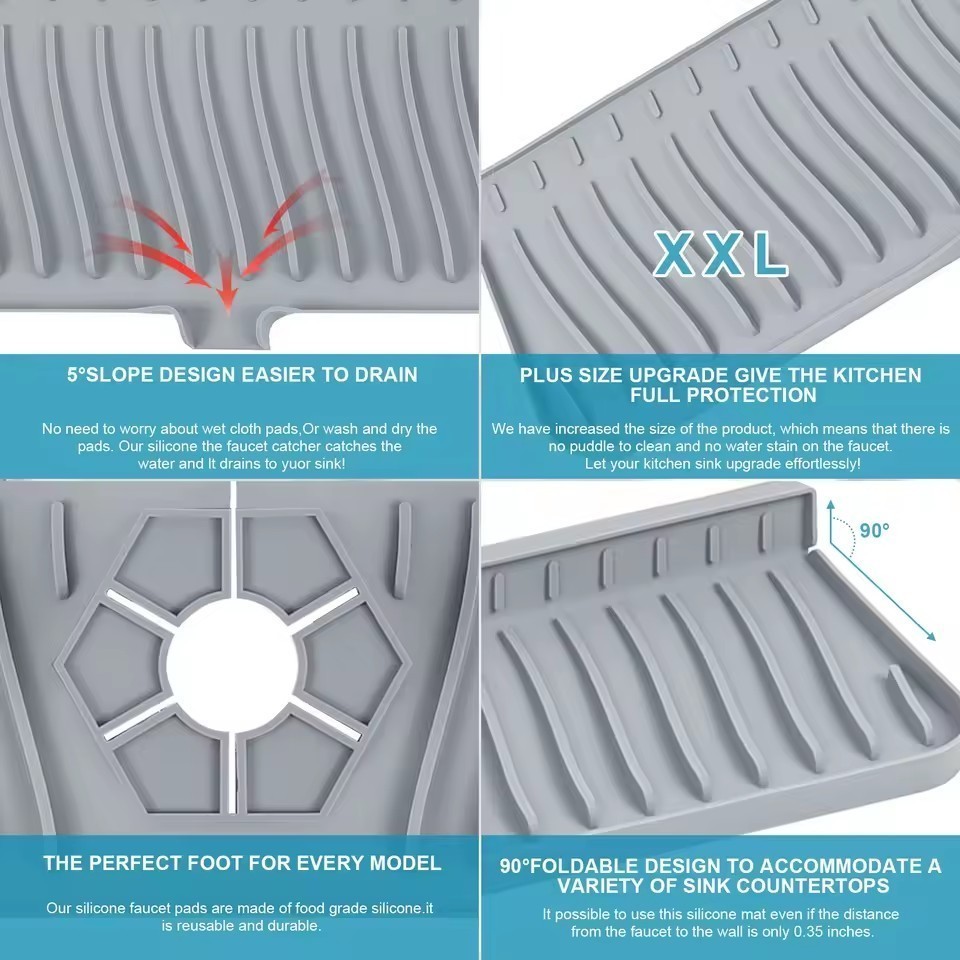Silicone Faucet Drain Mat Drip Catcher Tray Kitchen Sink Splash Guard Slip Pad