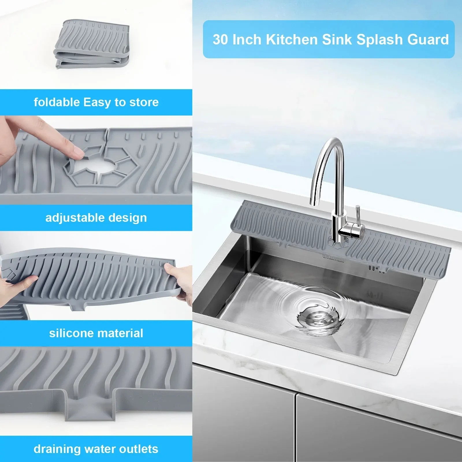как выглядит Silicone Faucet Drain Mat Drip Catcher Tray Kitchen Sink Splash Guard Slip Pad фото