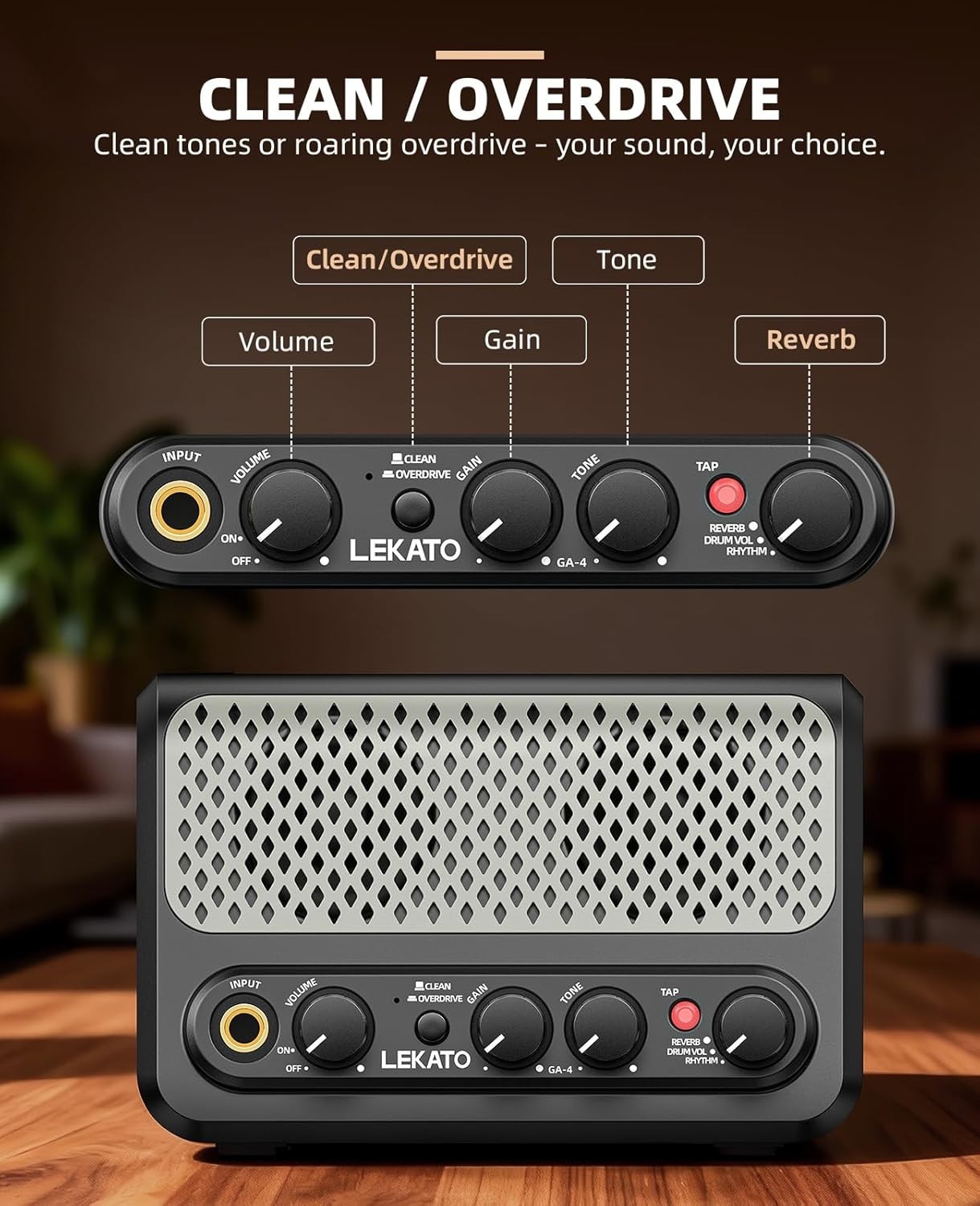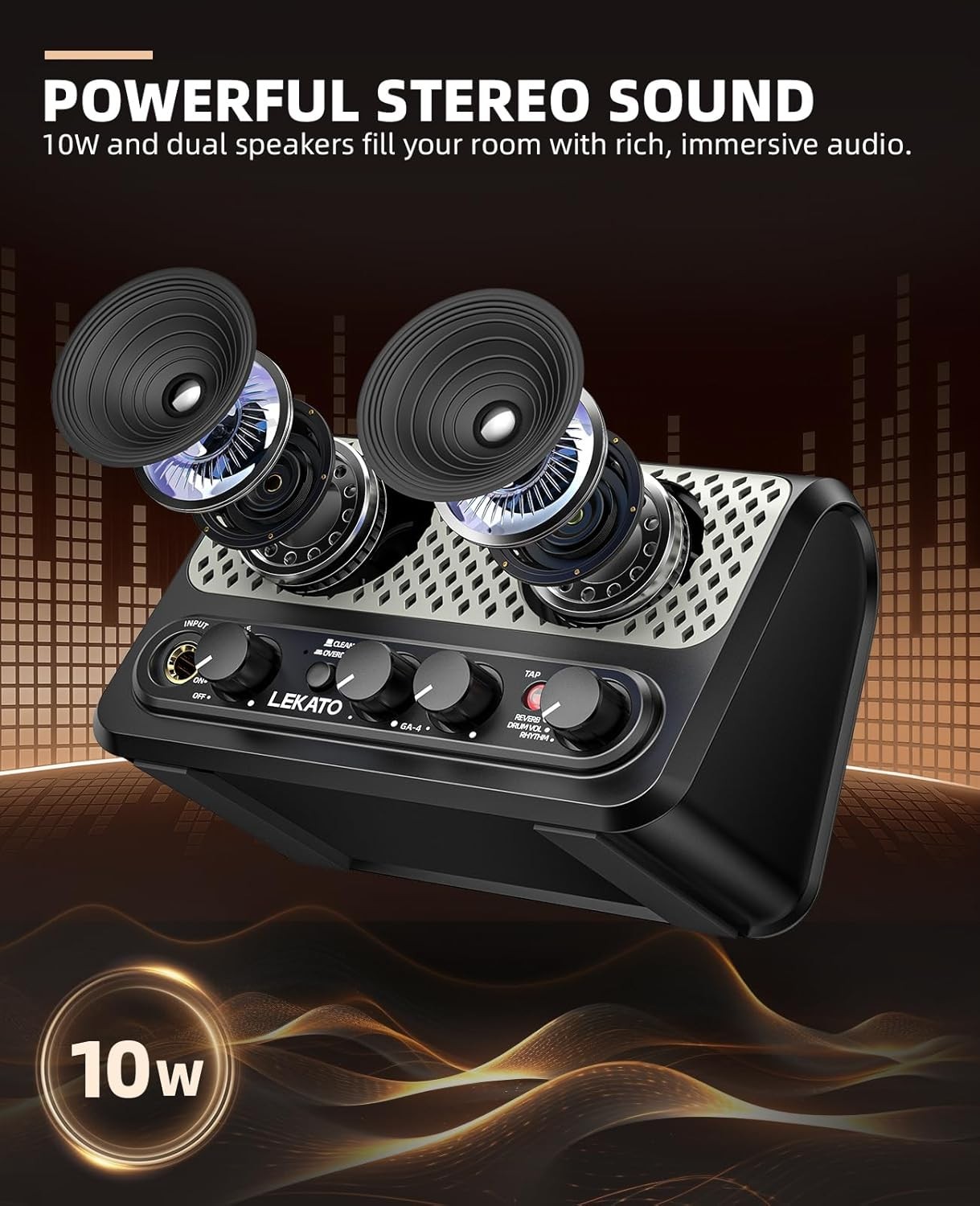LEKATO Mini Guitar Amp with 30 Drum Patterns, 10W Rechargeable Electric Guitar A