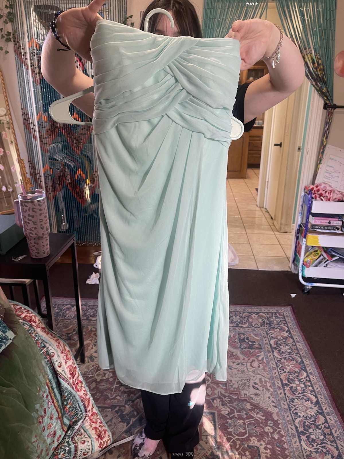 как выглядит Davids Bridal Mint Short Strapless Mesh Bridesmaid Dress Size 2 фото