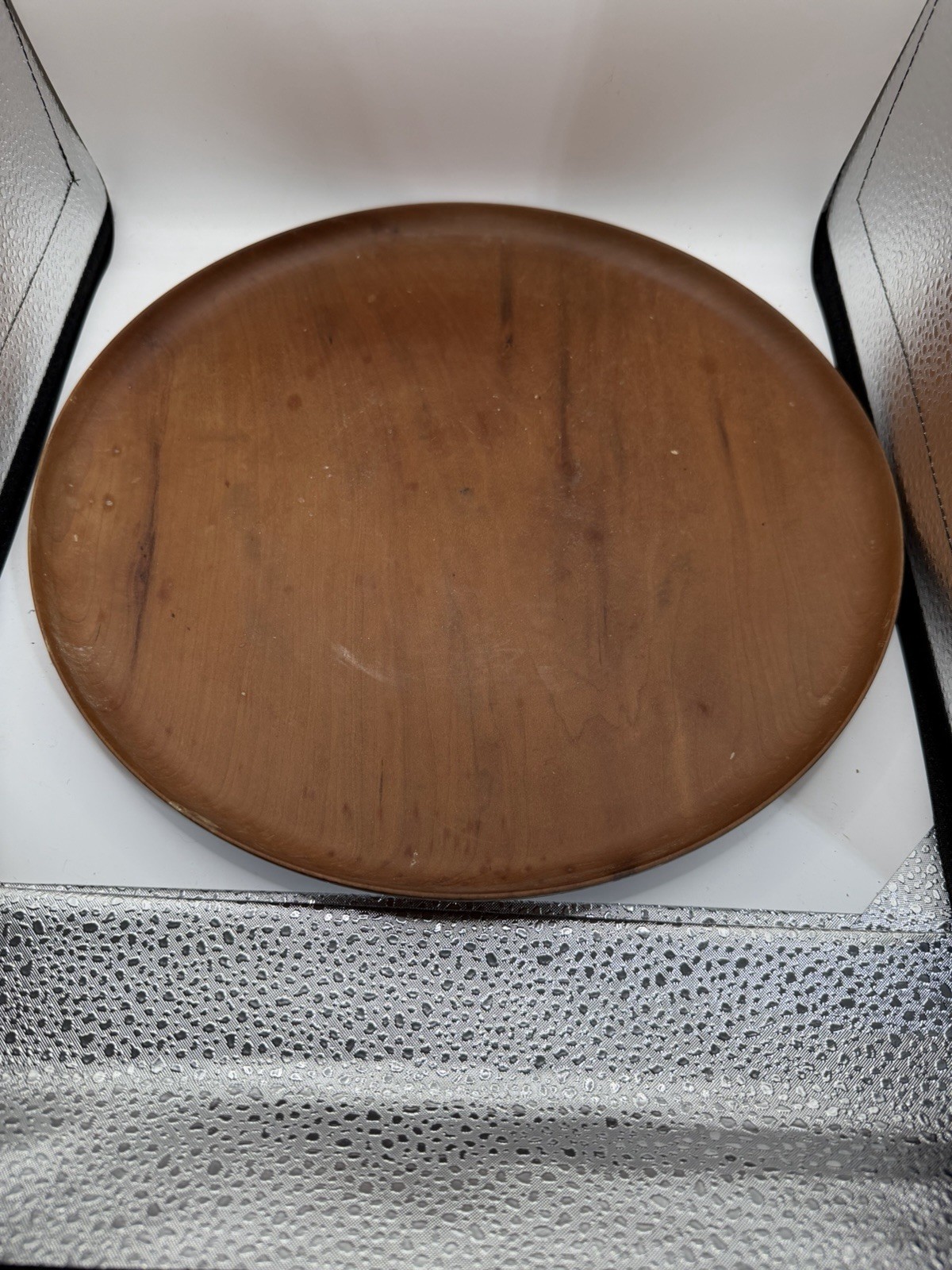 как выглядит Two Similar Hand-Turned Wooden Serving Plates  One Marked Woodbury s VT фото
