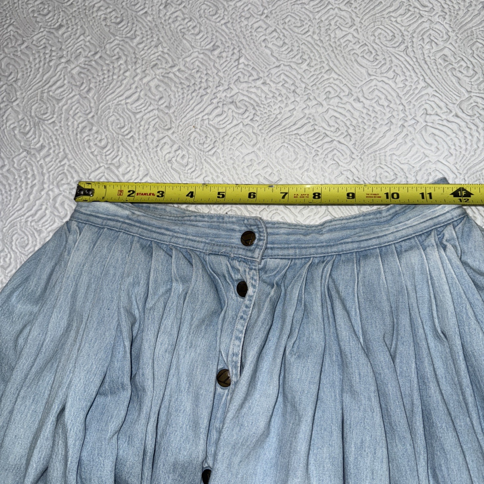 как выглядит Vintage Lizwear Denim Skirt Long Full Pleated Cotton Womens Sz 4 Button Flaw фото