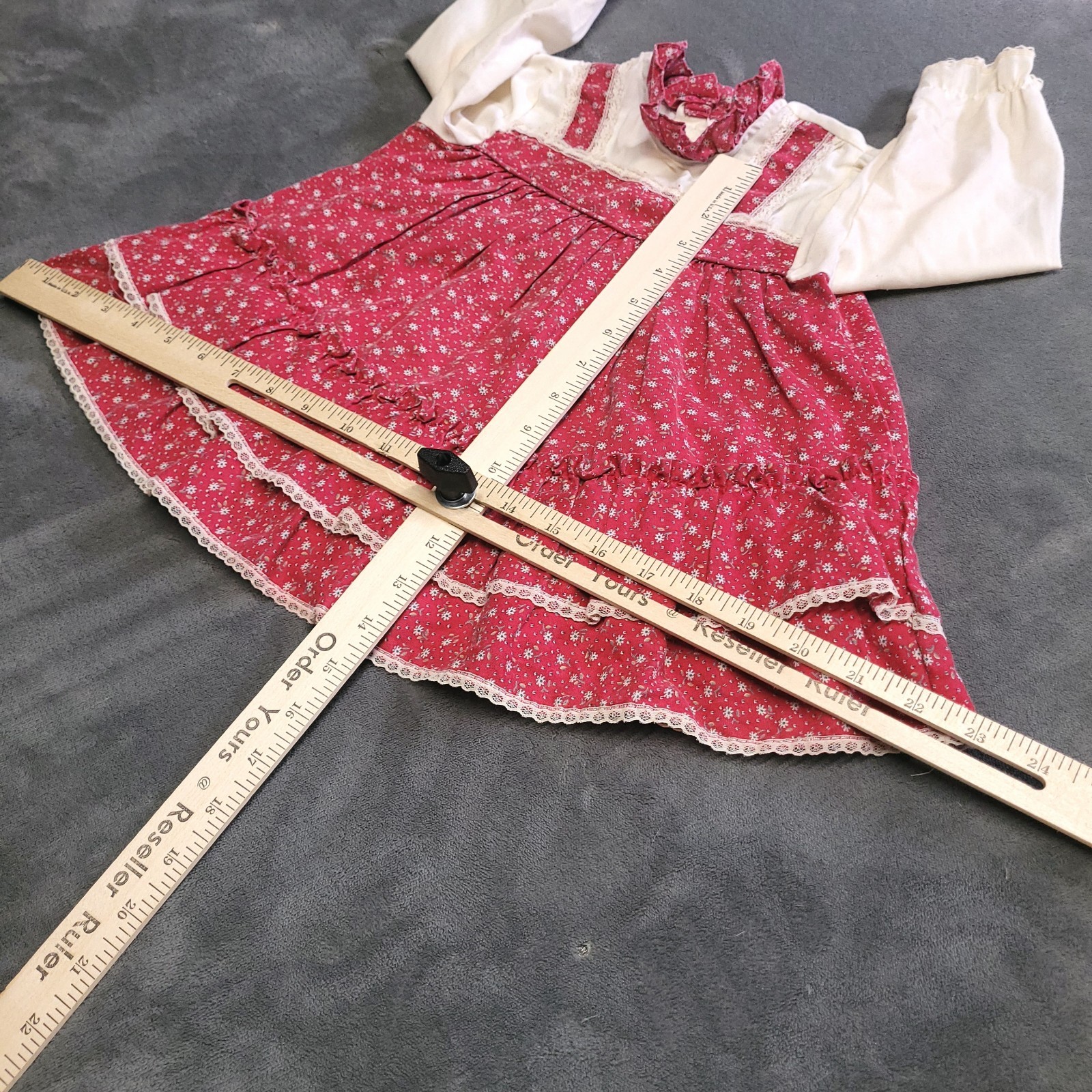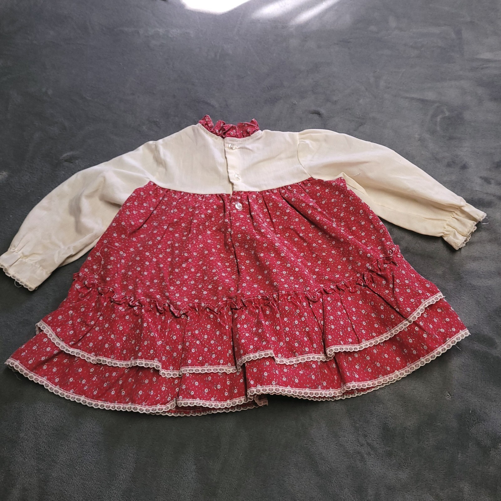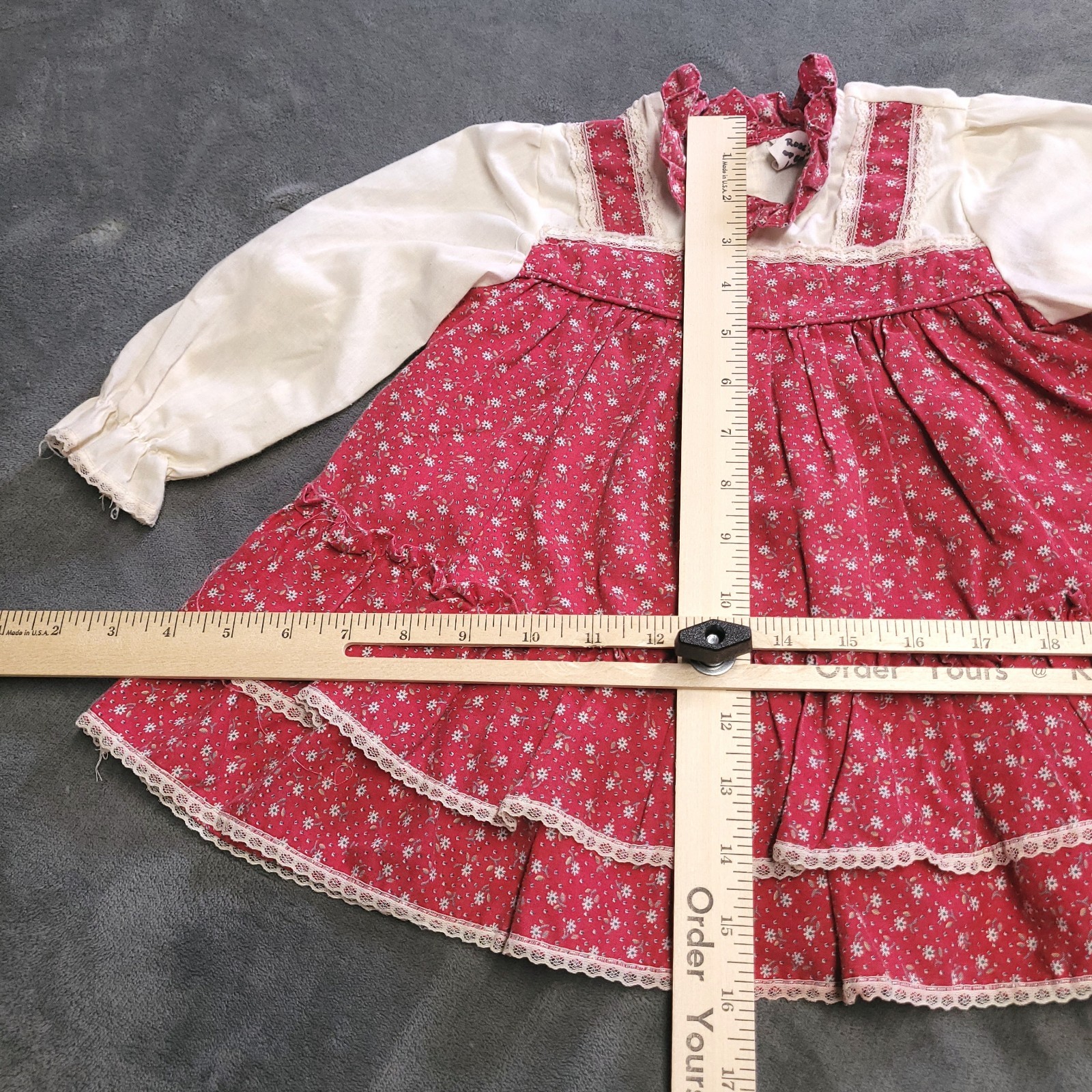 как выглядит Vtg 80s Handmade Toddler Floral Dress Size 2T Girl Praire Cottage Lace Fringe фото