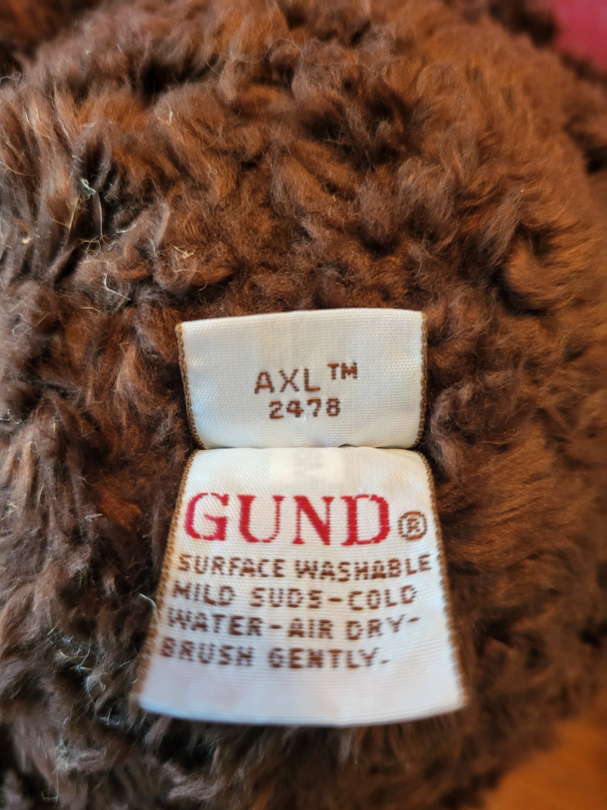 Vtg GUND AXL 2478 Shaggy Chocolate Dark Brown Bear w/ Big Nose Plush 15 RARE