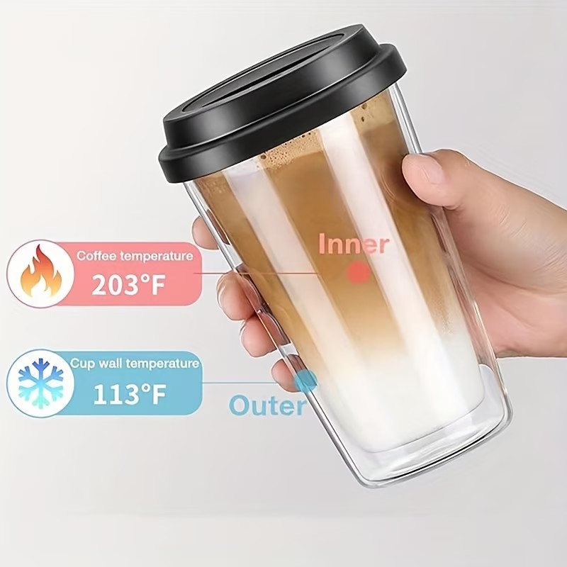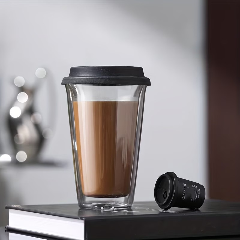 Set of 6 Double Wall 12oz Heat-Resistant Glass Coffee Mugs w/Silicone Base