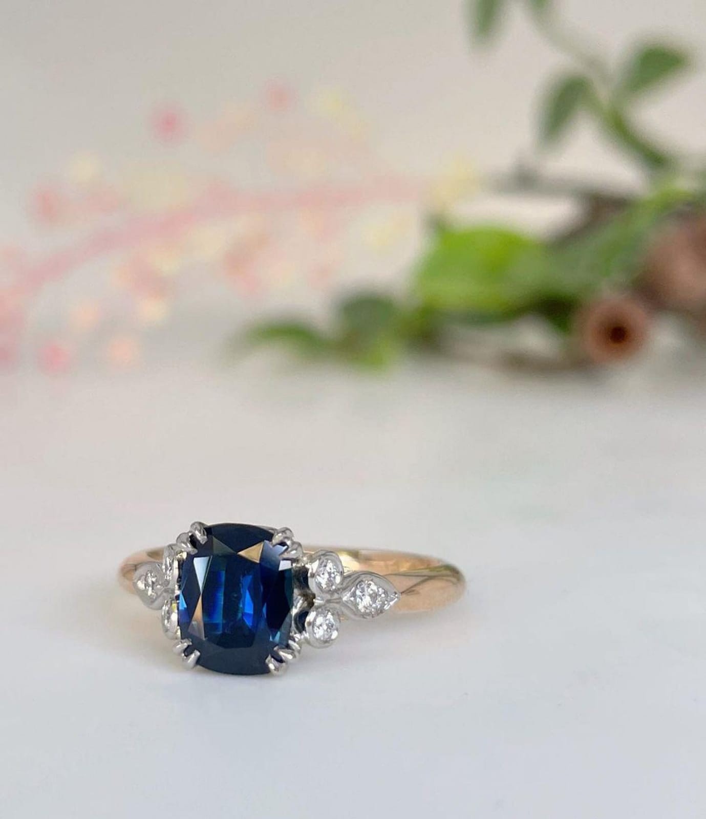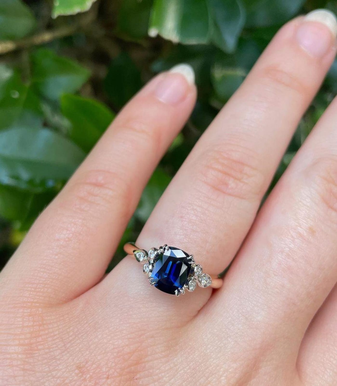 как выглядит Cushion Cut Blue Sapphire Ring: 925 Sterling Silver Unique Design Ring. фото