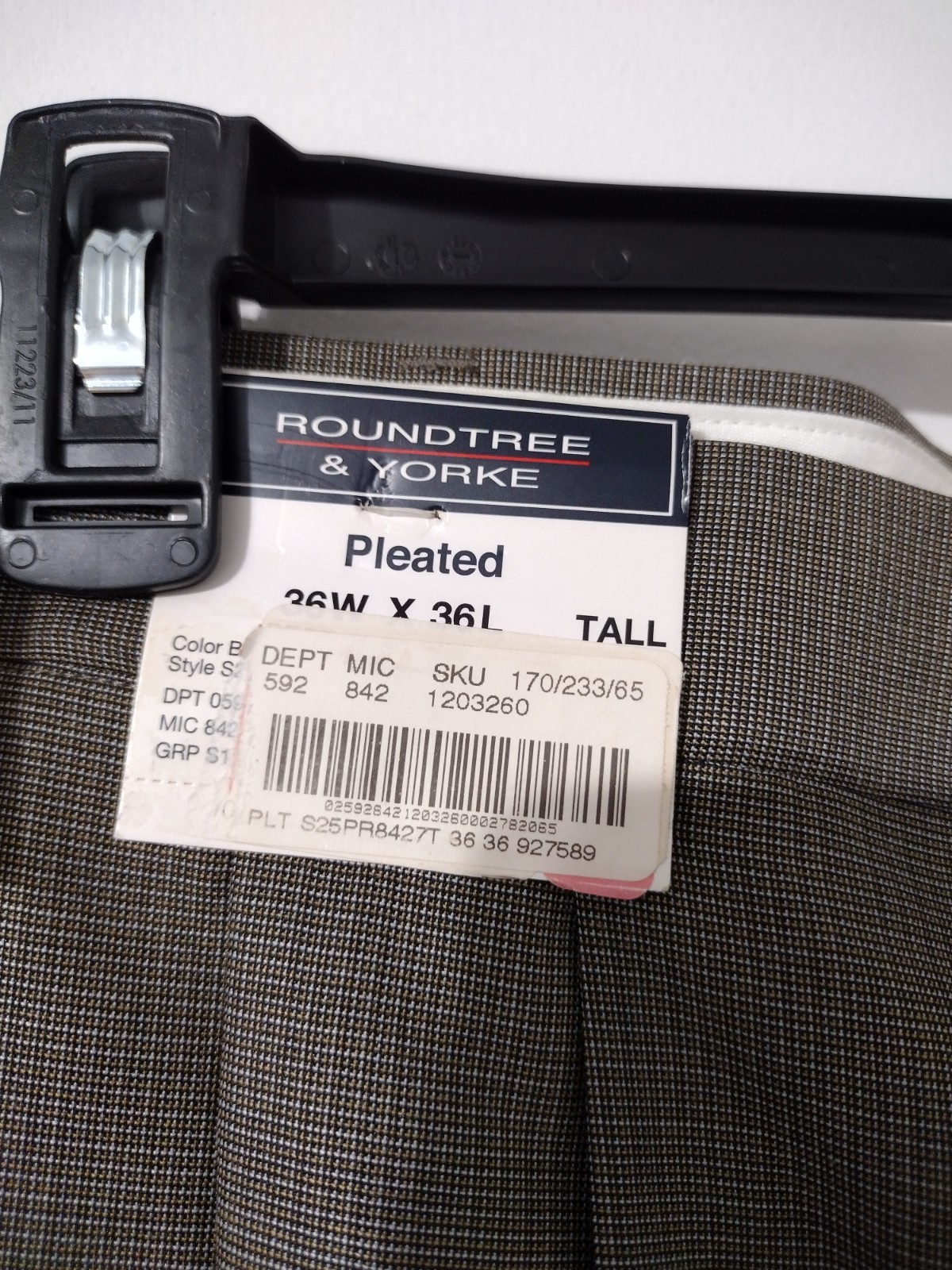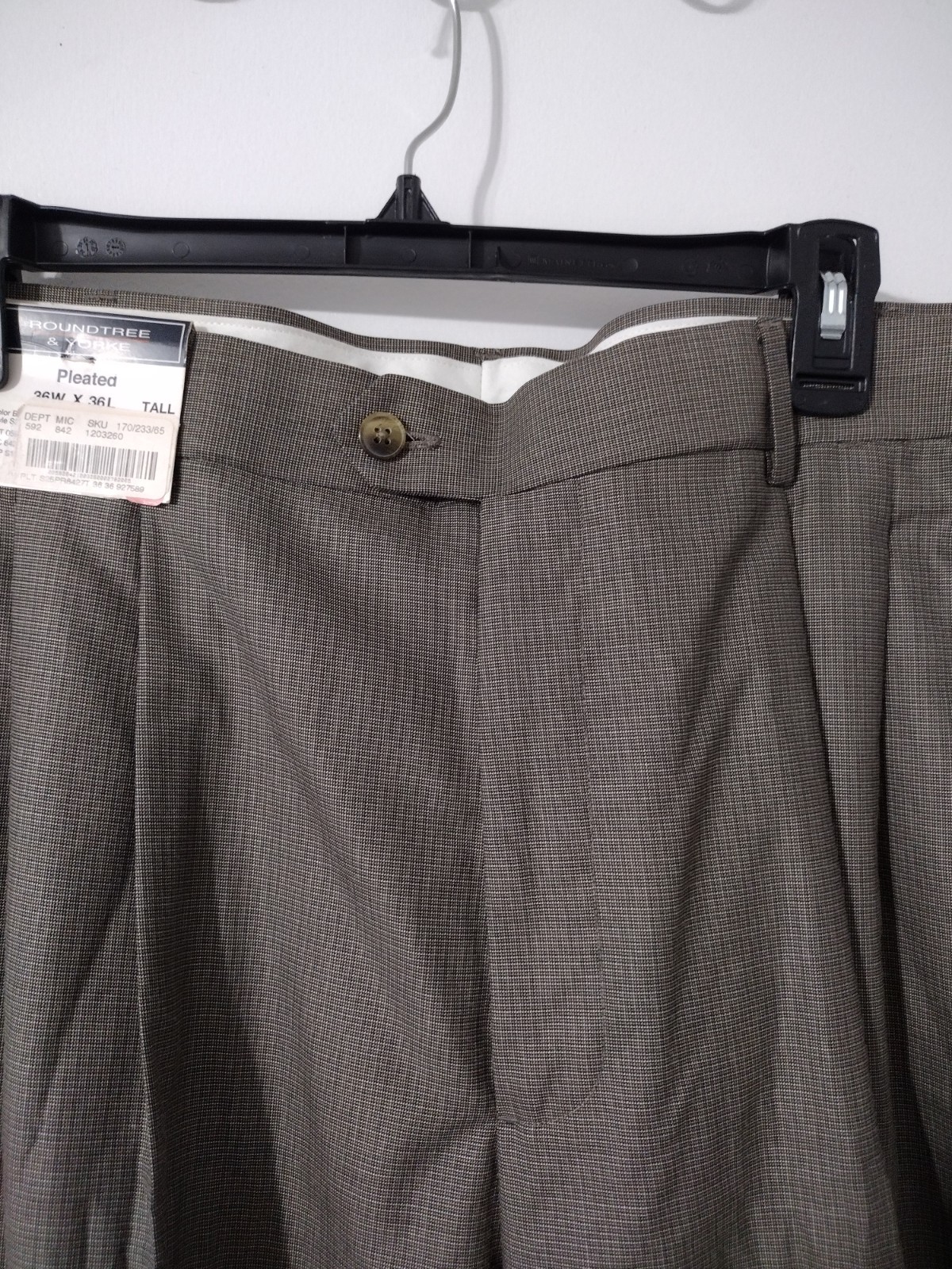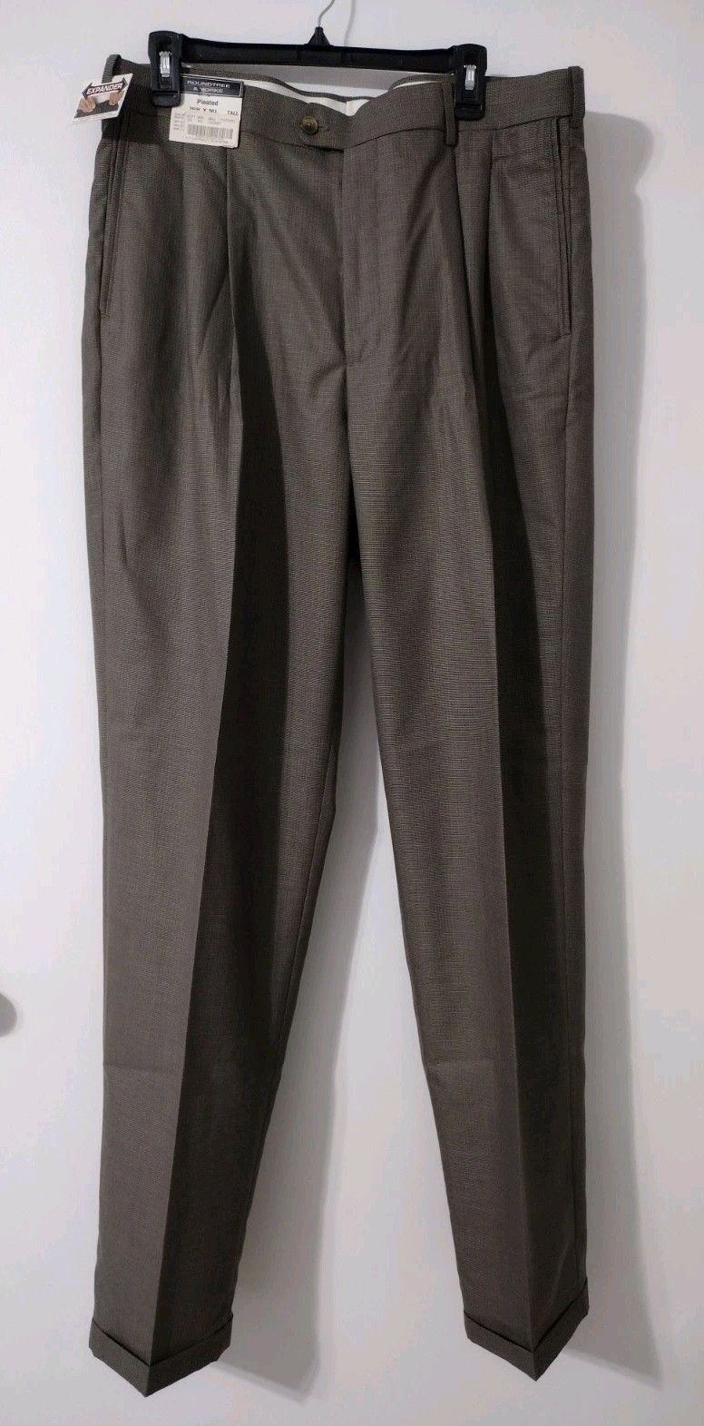 Round Tree Yorke Mens Gray Classic Fit Pleated Expander Waist Pants Size 36x36