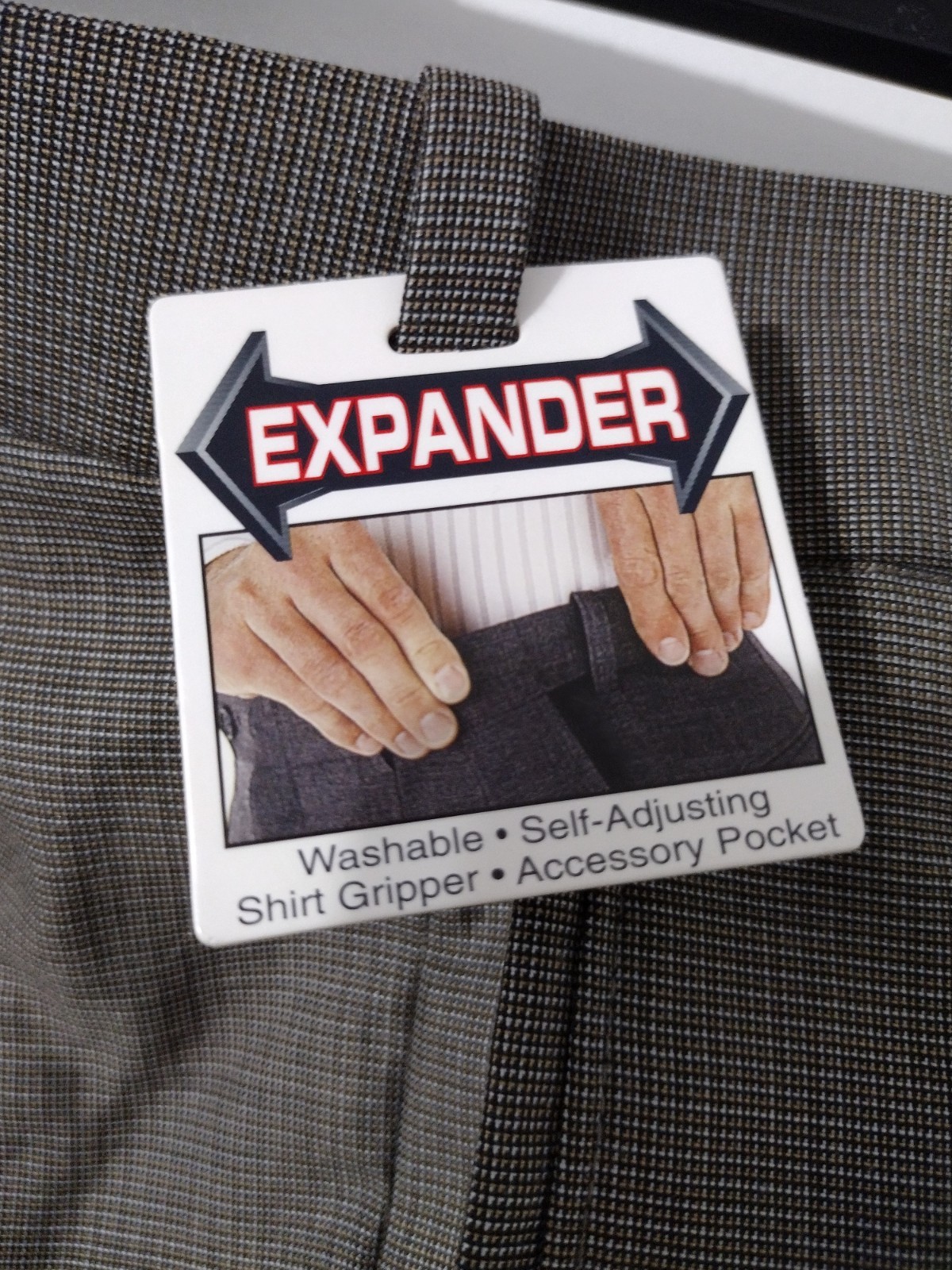 Accents: button/hook/zipper, pockets, expander waist, pleated
