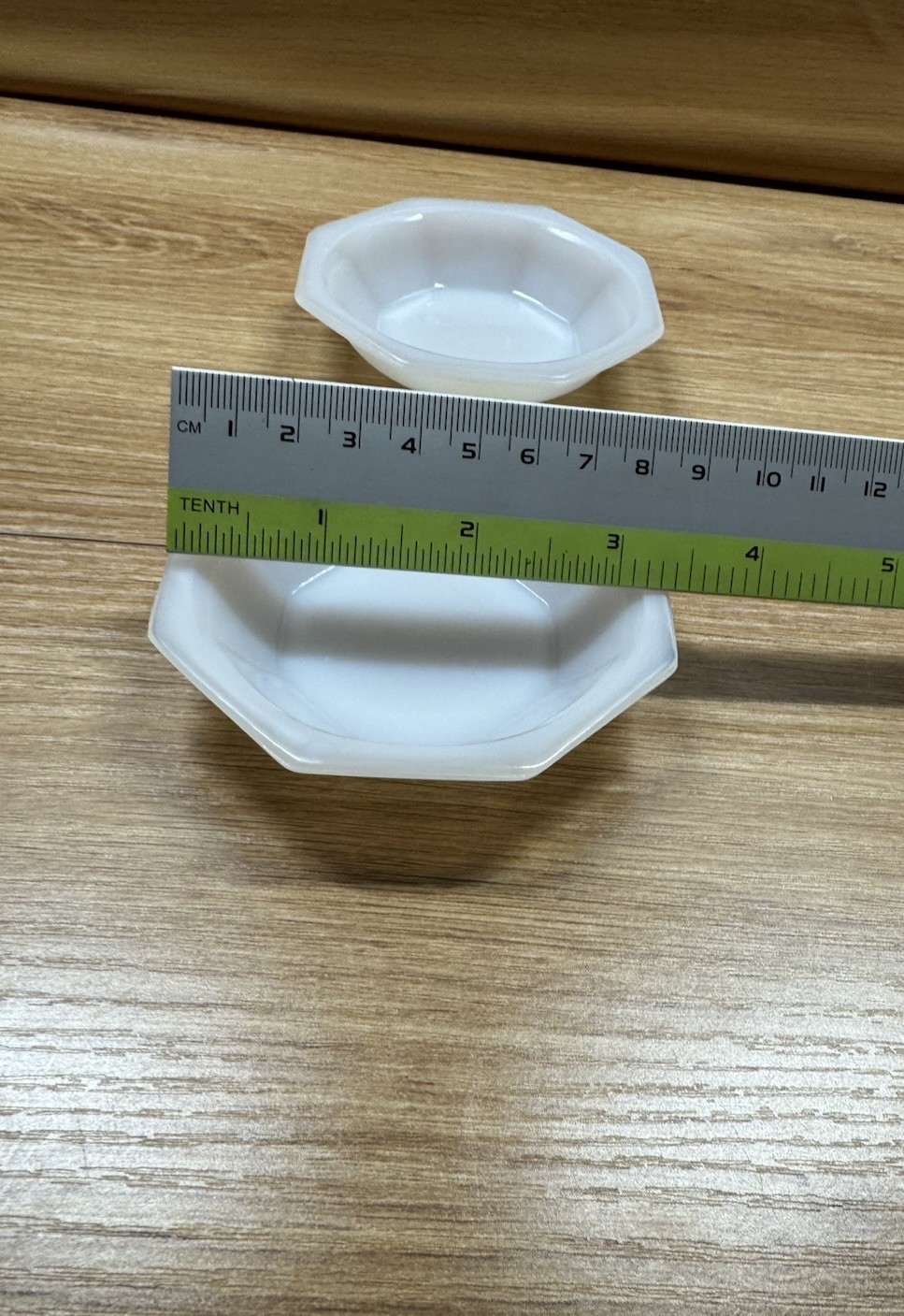 как выглядит Vintage AKRO AGATE Octagonal ART DECO Slag Glass CHILDS DISHES / 2 White Plates фото