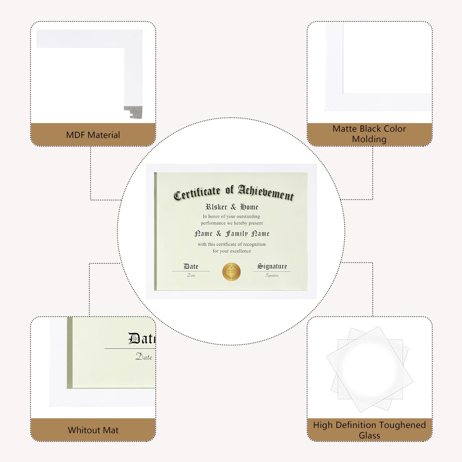 ELSKER HOME 8.5x11 Picture Frame Certificate Document Frame 6-Pack White Award