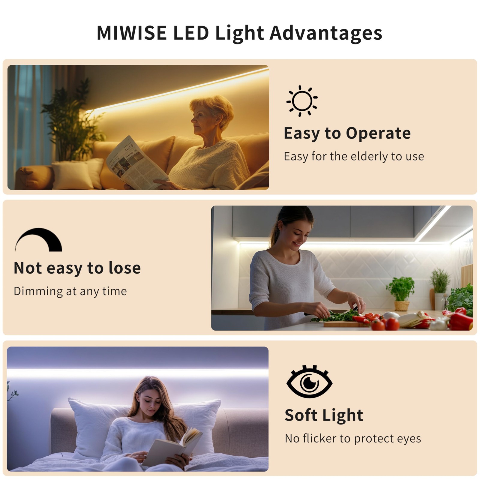 как выглядит MIWISE 32.8ft 3000K COB LED Strip Light, CRI 90 Warm White, Dimmable 24V фото