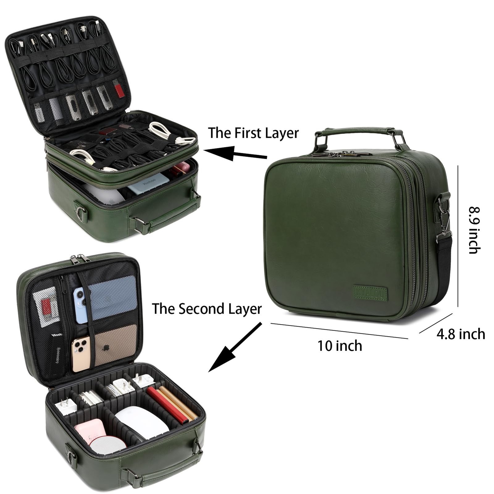 Model Name: Travel Electronics Organizer - Olive Green