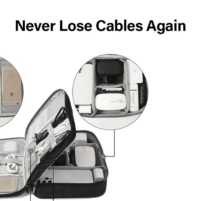 Cable Organizer Case Double-Layer Cord Travel Storage Bag for Tech Accessor...