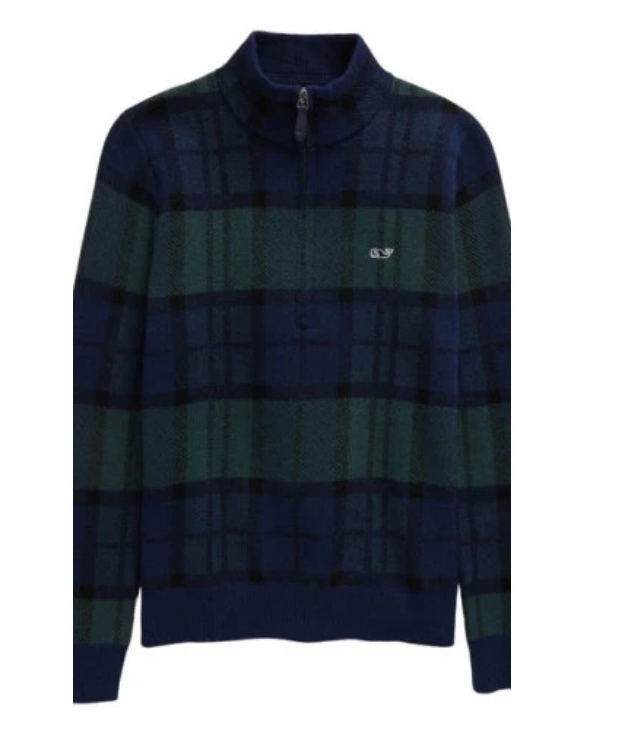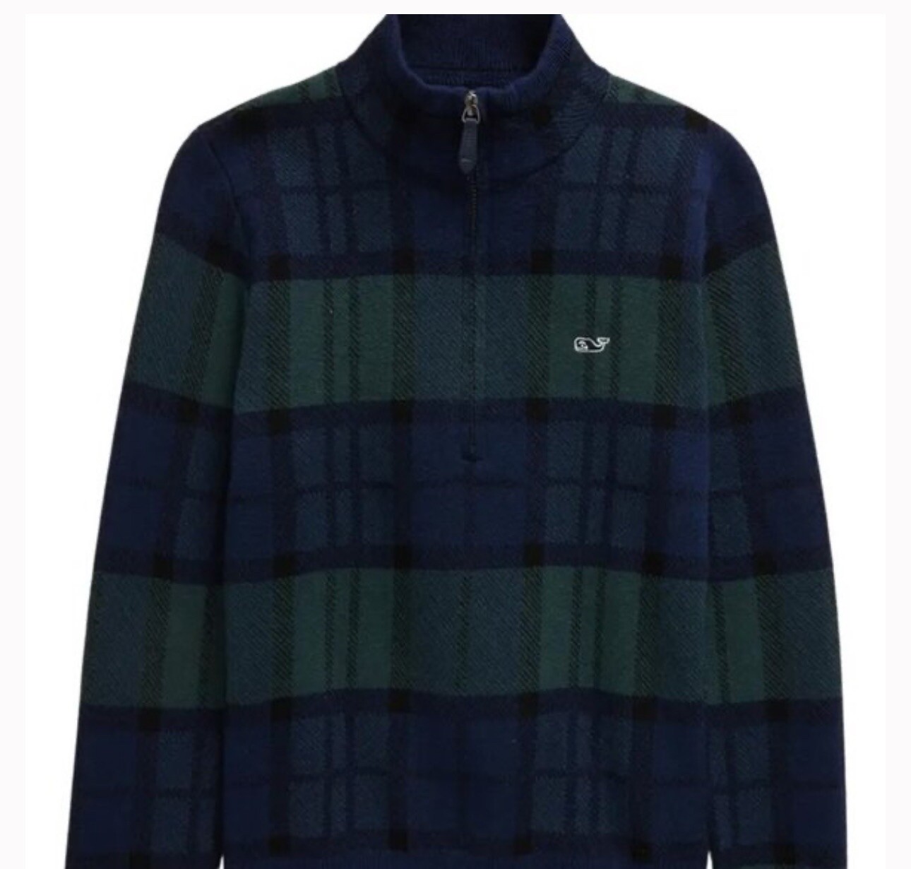 75 Vineyard Vines Kids Wool/Cotton 1/4 Zip Pullover X-Large New Holiday Plaid
