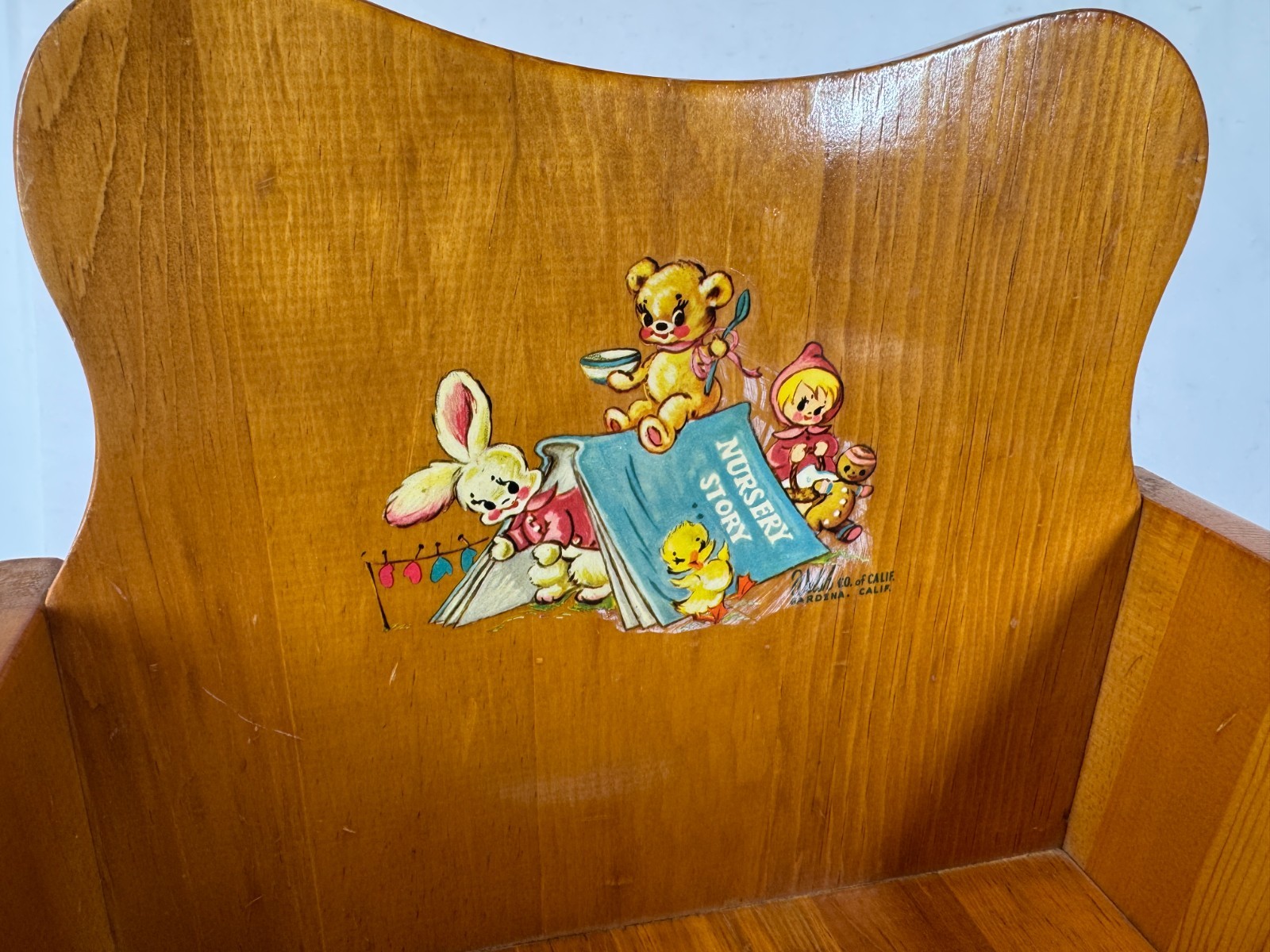 Vintage Wood Nursery Story Book Bear Bunny 1960s Potty Chair Highchair NO BOWL