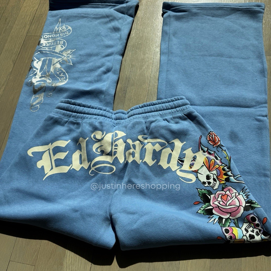 как выглядит Ed Hardy Womens Sweatpants Baby blue фото