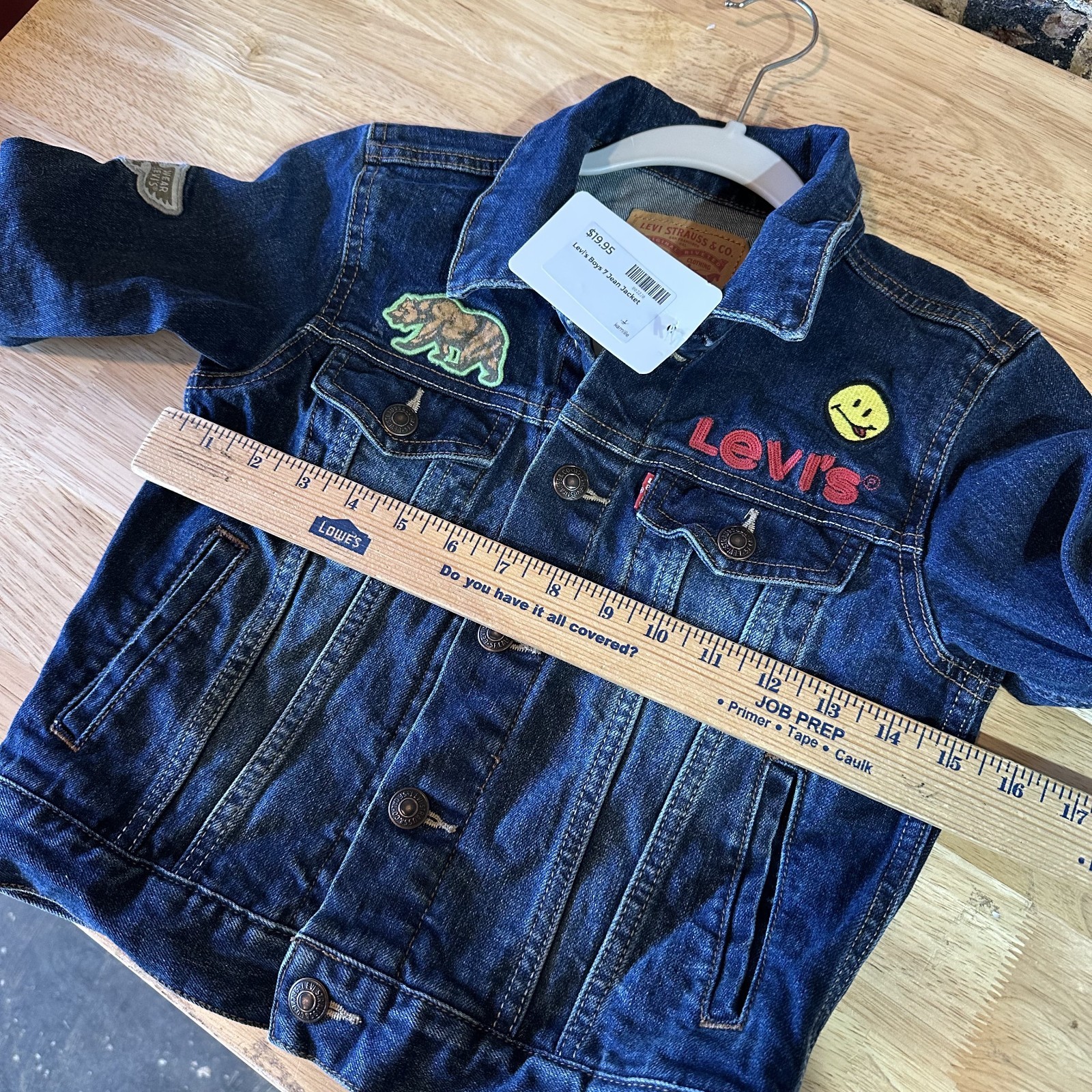 Levis Boys Girls Blue Jean Denim Trucker Jacket Kids Size 7 Patches California