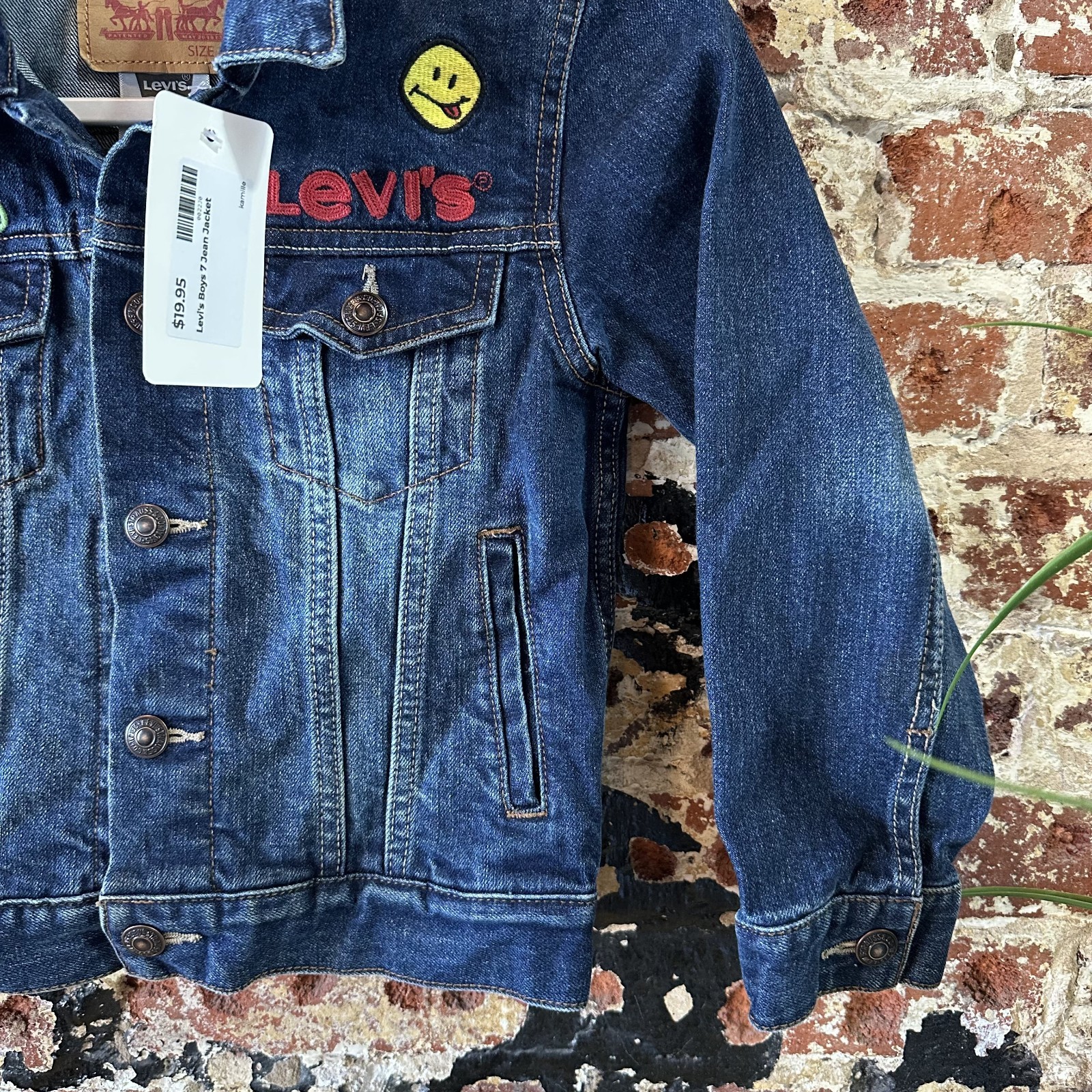 как выглядит Levis Boys Girls Blue Jean Denim Trucker Jacket Kids Size 7 Patches California фото
