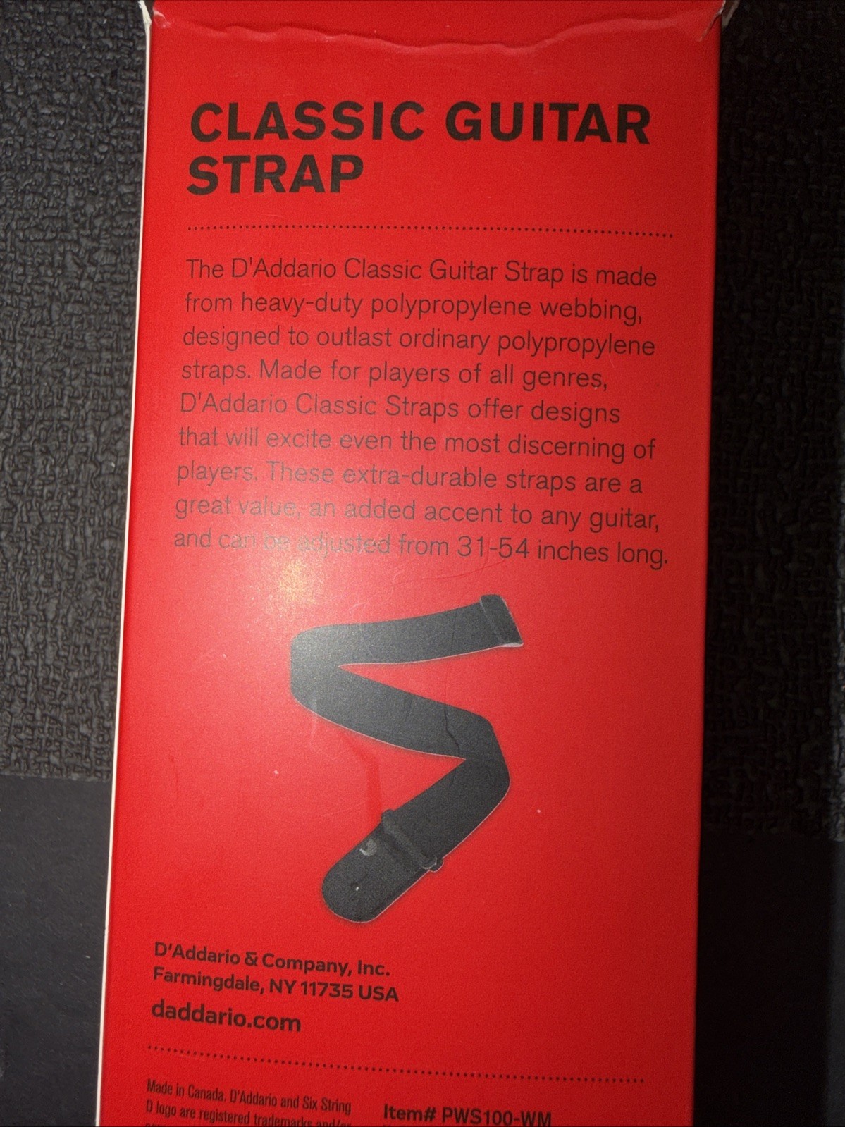 Guitar Strap D'Addario Polypropylene - Black- Adjusts From 31-54 Brand New