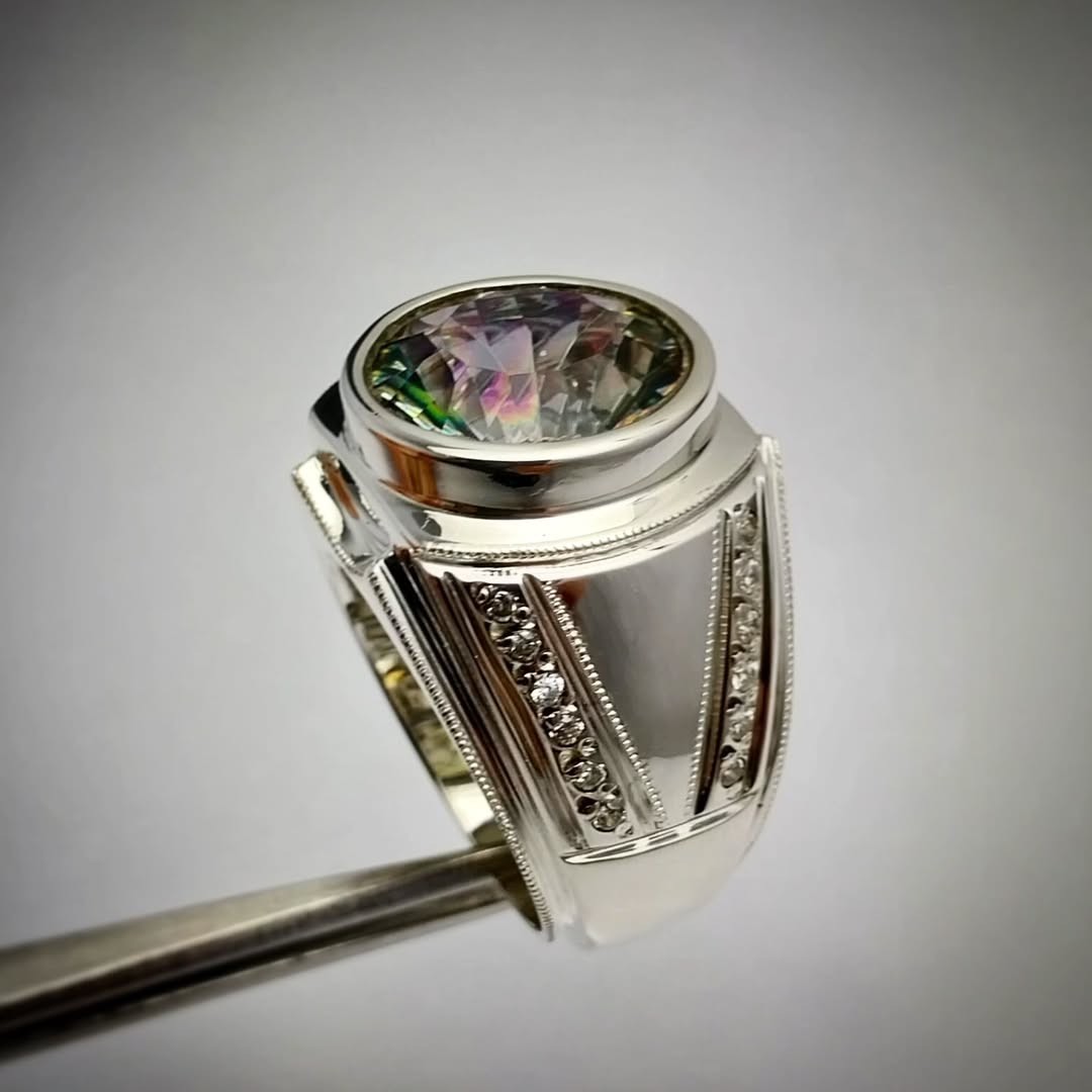 как выглядит Natural Mystic Topaz Ring 925 Sterling Silver Men