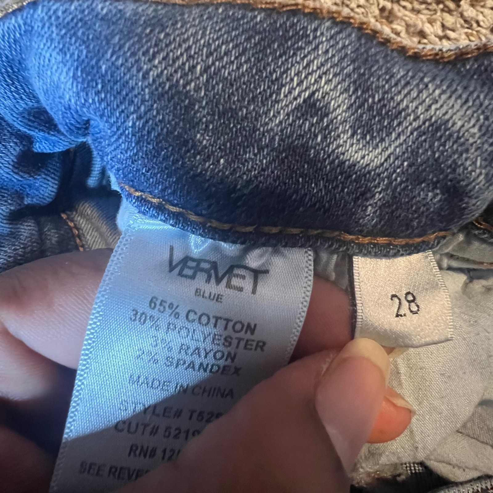 как выглядит Vervet Blue Womens High Rise Skinny Jeans Medium Wash Raw Hem Size 28 T6294 фото