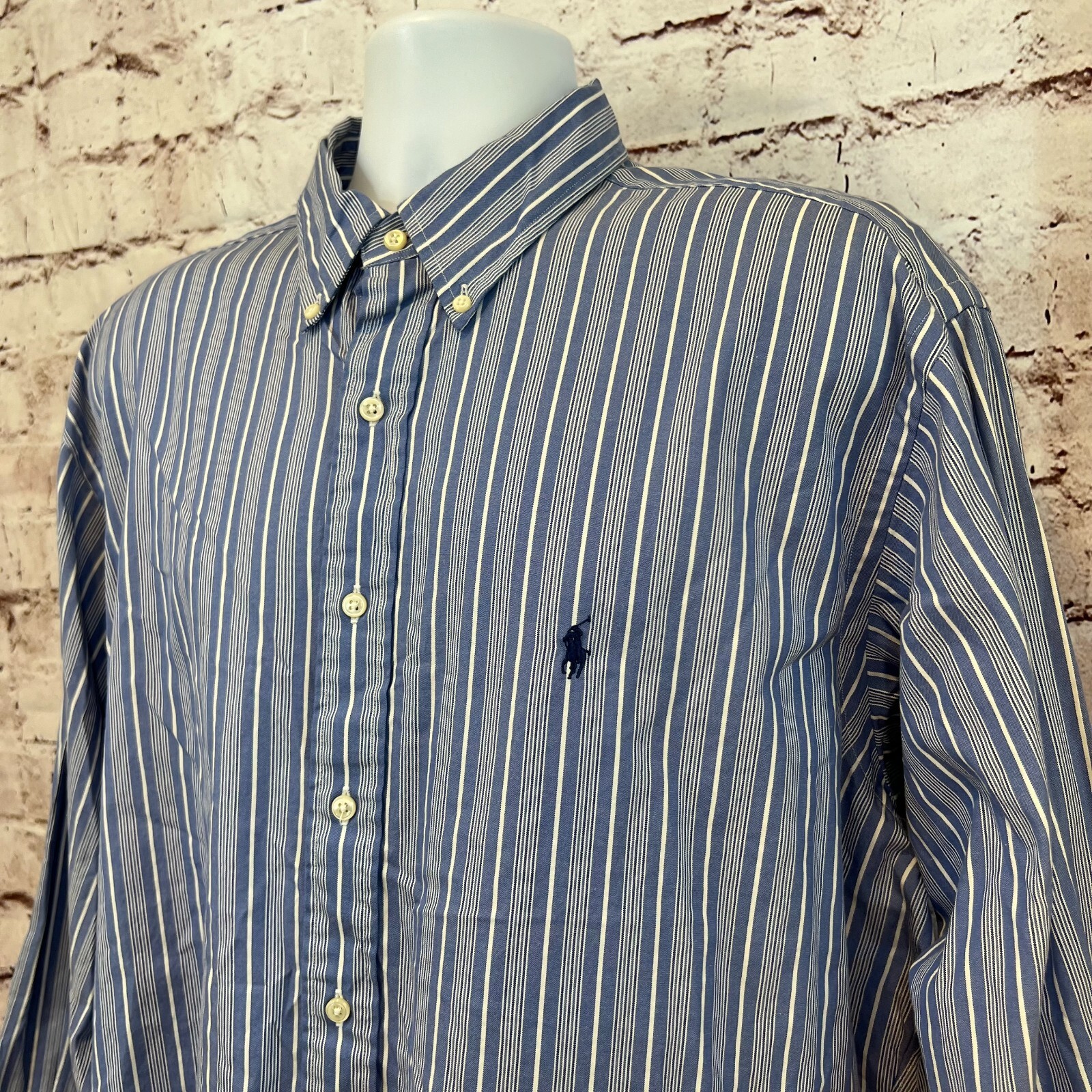 как выглядит Ralph Lauren Mens Blue Striped Long Sleeve Button Up Yarmouth Shirt Size XL фото