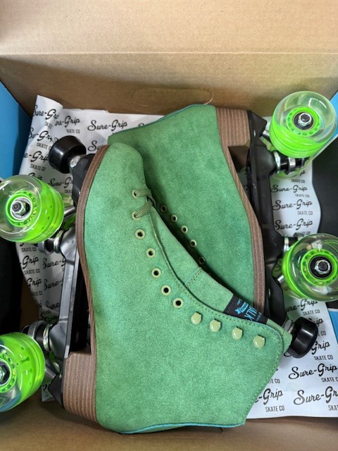 One of a Kind Sure Grip Boardwalk SeaMoss Suede rollerskates size 7 womens 8-8.5