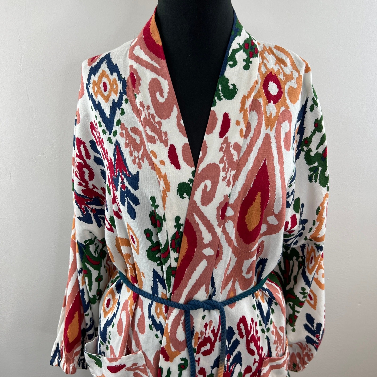 ZARA Multicolor Long Sleeve Belted Waist The Hanoi Kimono w/ Pockets L Large NEW